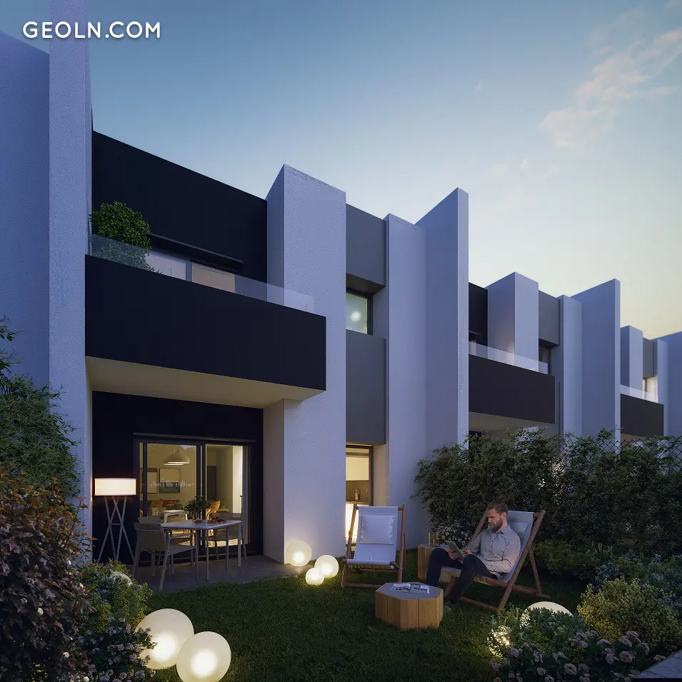 半独立式住宅的住宅区,直接促销,设有4间卧室。 采用前卫设计,设计使您可以按照自己的意愿生活,并可以在私家花园中享受户外活动。