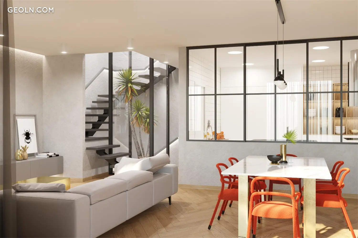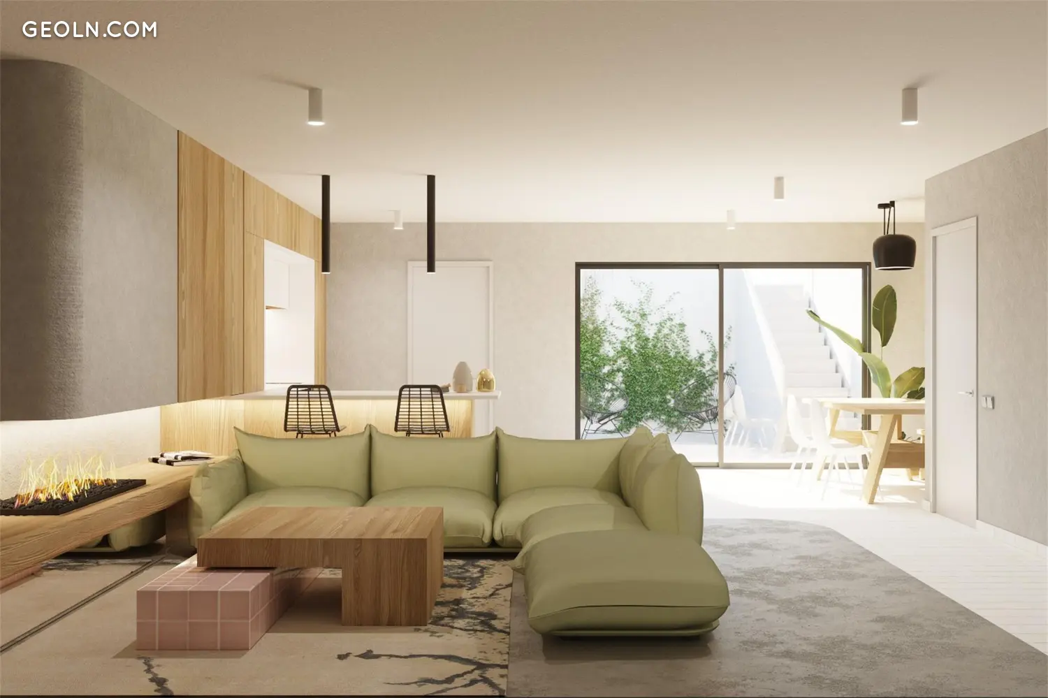 英语通过楼梯与花园和游泳池连接。