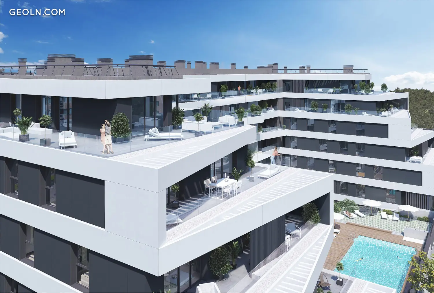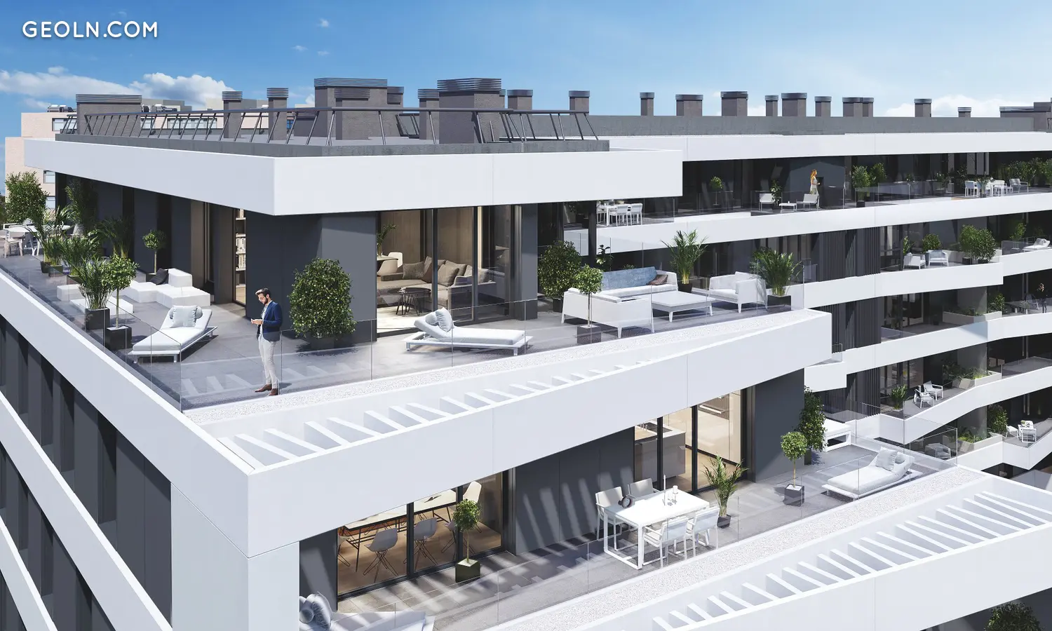 马德里的拉斯雷哈斯(Las Rejas)地区的独家城市化项目Isla de Tambo开发是在带门禁功能的封闭空间内进行的,该空间已设计为40套3卧和4卧房屋的顶层公寓和底层。所有客房都具有双向性,并设有大露台,其中大部分都位于南部。