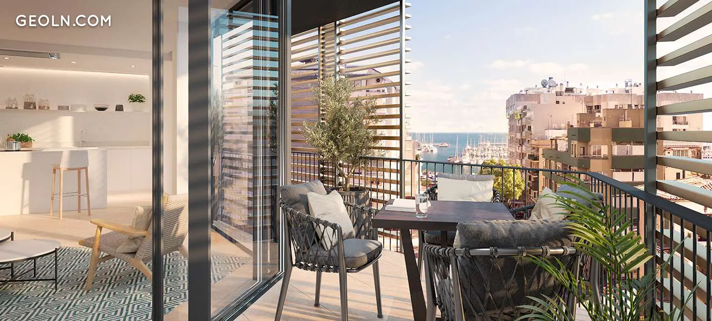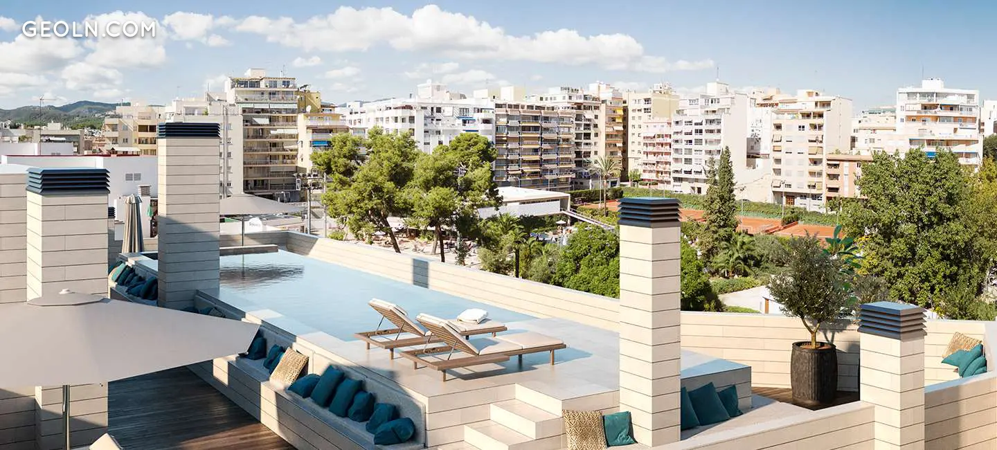 该开发项目在屋顶上设有一个公共游泳池,使您可以轻松畅游,欣赏地中海和帕尔马皇家游艇俱乐部(欧洲最佳之一,也是国际帆船赛的参考点)的景色。