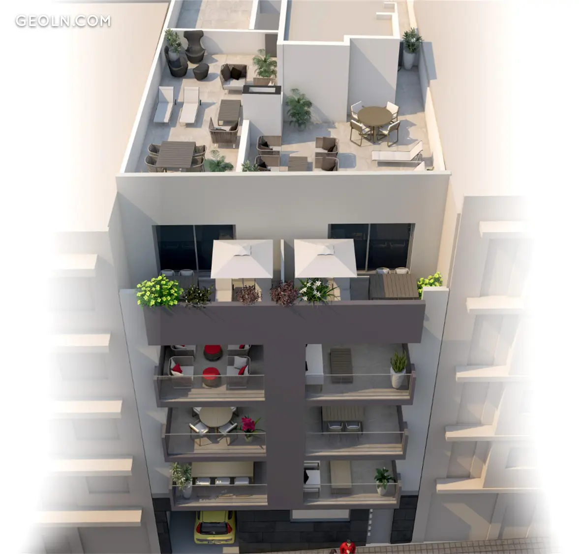 住宅和顶层公寓的新开发项目,包括3间带露台的双人卧室,2间浴室,包括车库和优良品质。 它由7栋房屋和2栋顶层公寓组成。