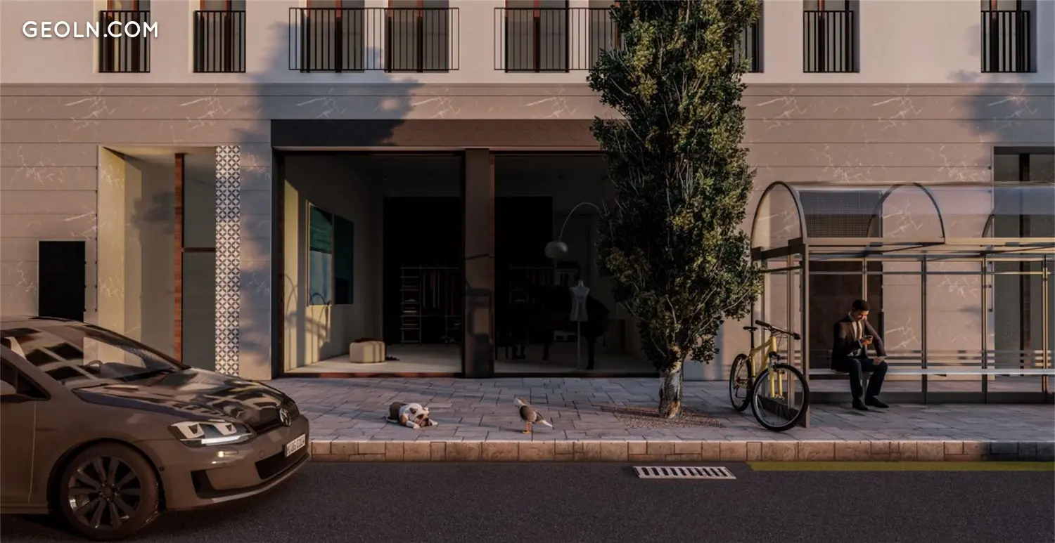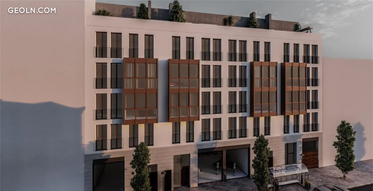 拥有19栋房屋,商业场所,37个停车位和20个储藏室的建筑物。 建筑群是在聚会的墙壁之间发展的,它的容积由以下部分组成:位于地下两层的车库和储藏室所在的楼层,两个入口和商业场所的底层,一个可进入自由区房屋的夹层楼以及 公用游泳池,四层,每层4栋房屋,阁楼上有3栋房屋。
