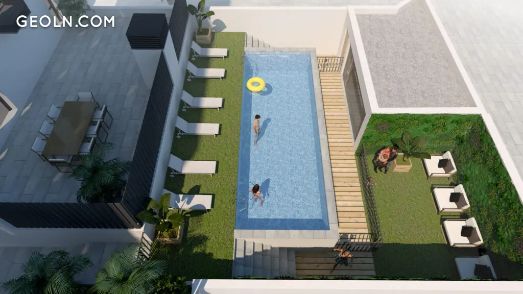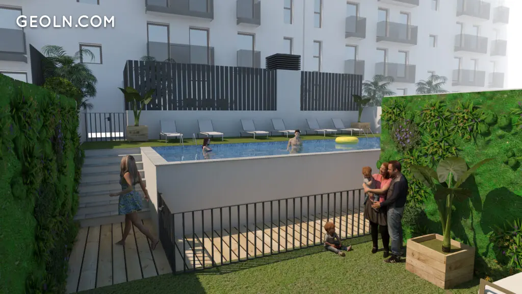 由30栋房屋组成,其中2卧室和3卧室分布在建筑物的所有楼层。 带游泳池的社区区域。 它还有停车位和可选的储藏室。