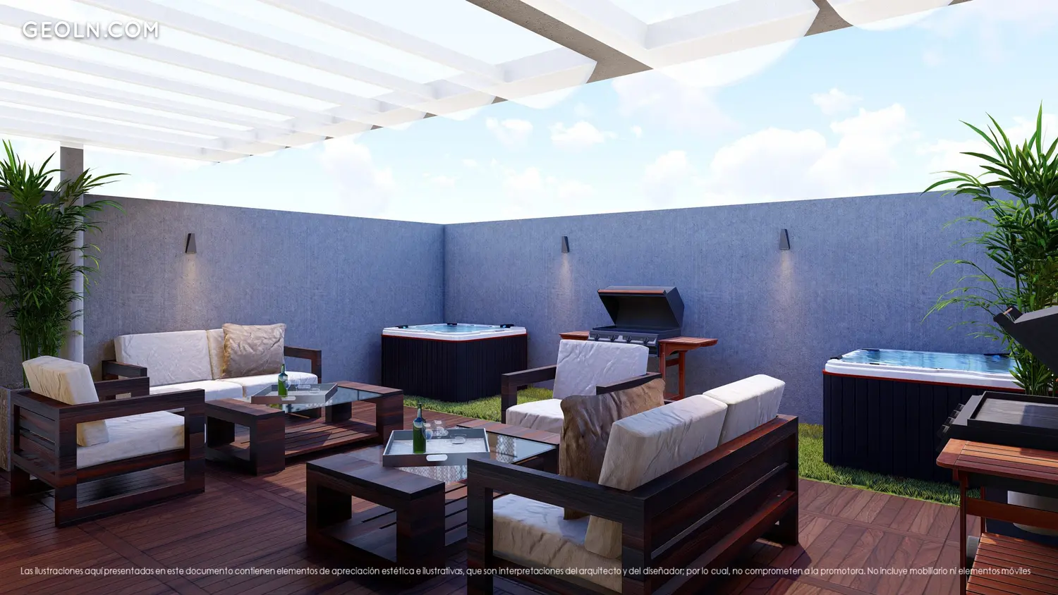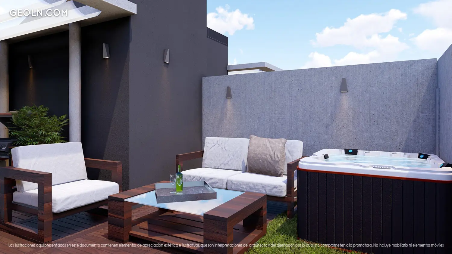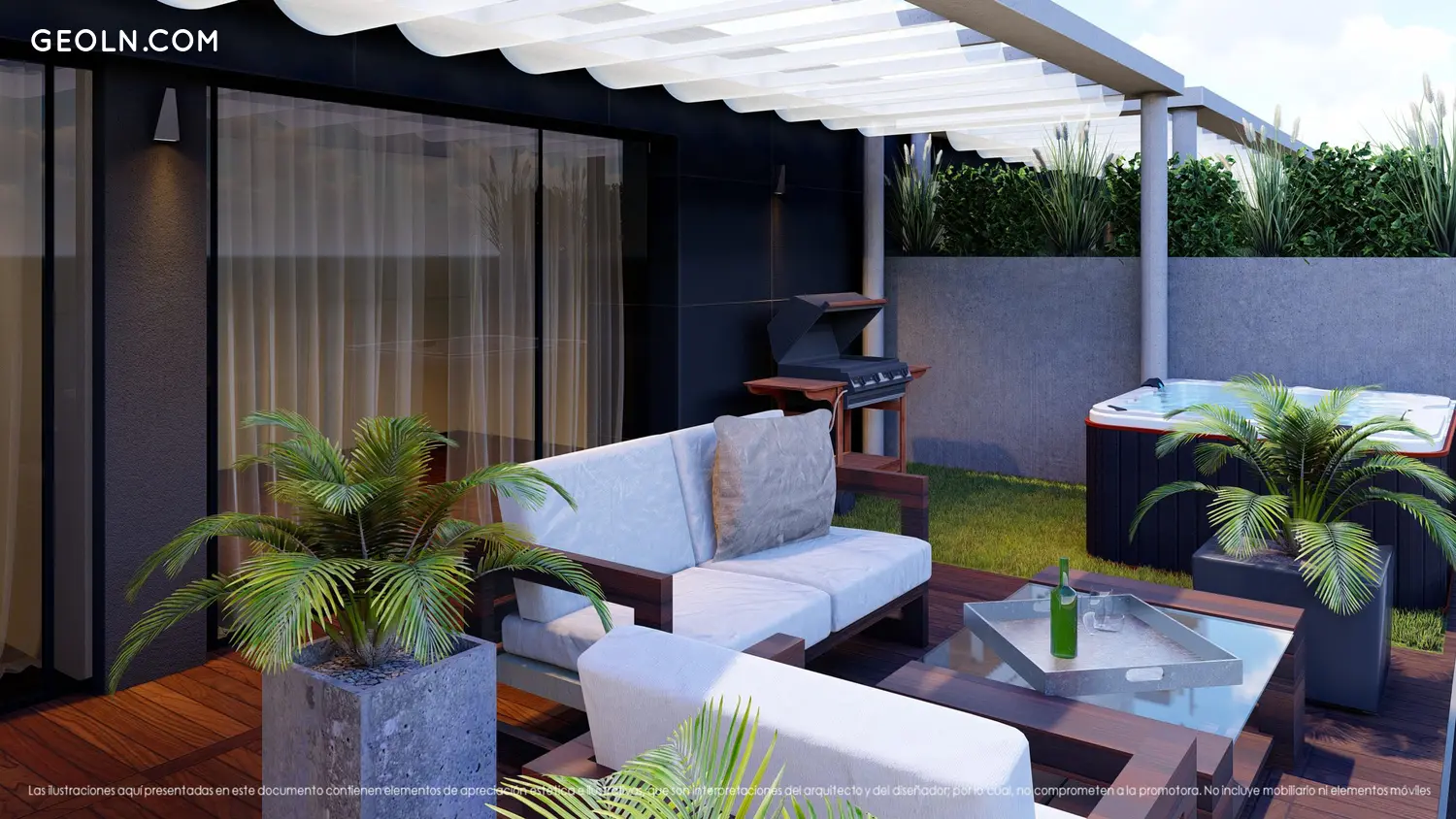 14个带有大露台的新建房屋,以及带按摩浴缸和烧烤设施,车库和储藏室的社交区。