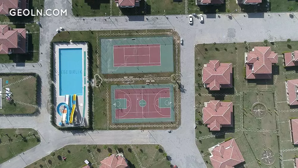 *距大海850米* 1个室外游泳池(放松游泳池-享受宁静安静的游泳乐趣)* 1个室外游泳池(带水滑梯的活动游泳池)*每个游泳池旁的儿童游泳池*每个岛上的人行道*室外停车场*场地正门*场地围墙*内部照明系统*夜视监控摄像头系统* 24小时保安*场地管理和保安室*景观,环境和基础设施安排*户外运动和空调设备*篮球,网球场和排球场*儿童乐园*Güzelçamlı-Millipark7公里*Kuşadası12公里*博德鲁姆140公里*艾登65公里*机场80公里*伊兹密尔95公里以弗所,以弗所,梅里曼纳,迪迪姆·米利图斯,普里涅,棉花堡等历史遗迹每天到这些地方的交通距离。