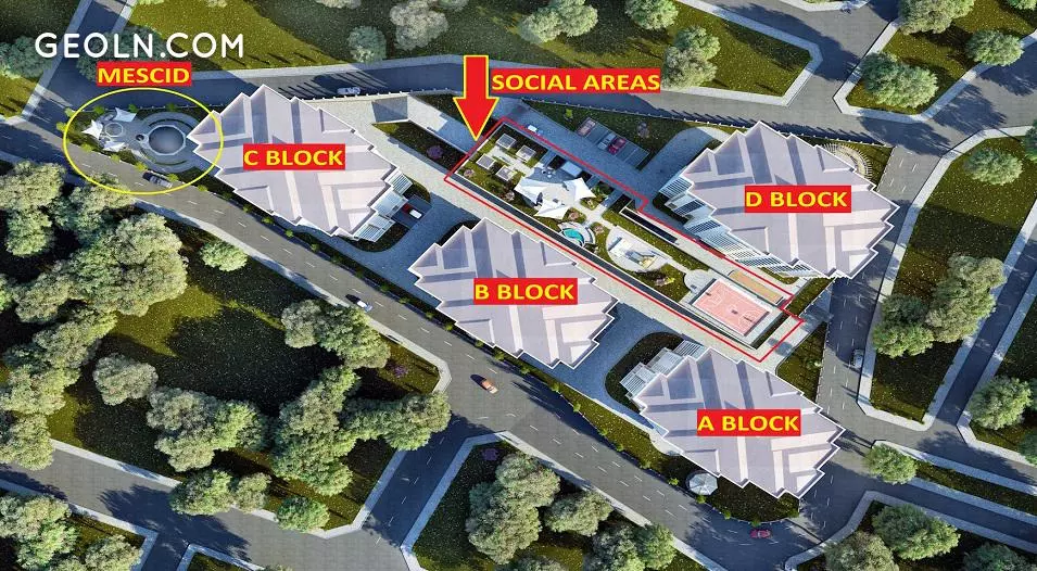我们的项目由4个街区和186个单位组成,占地11.570平方米。 一层建在四个公寓上,前立面上的三个公寓享有海景。 我们的公寓面积为3 + 1165平方米。