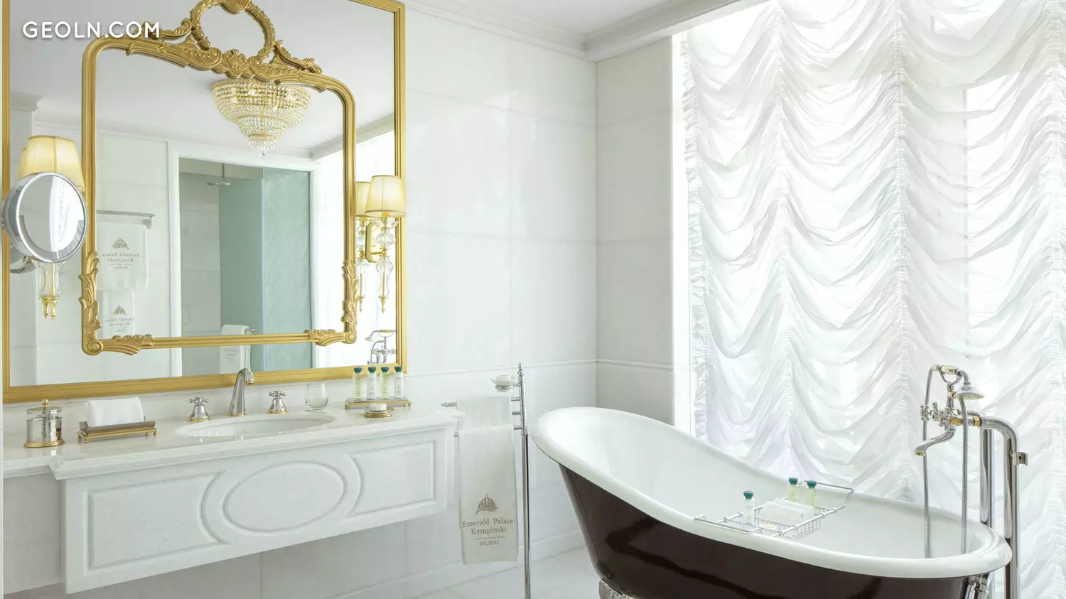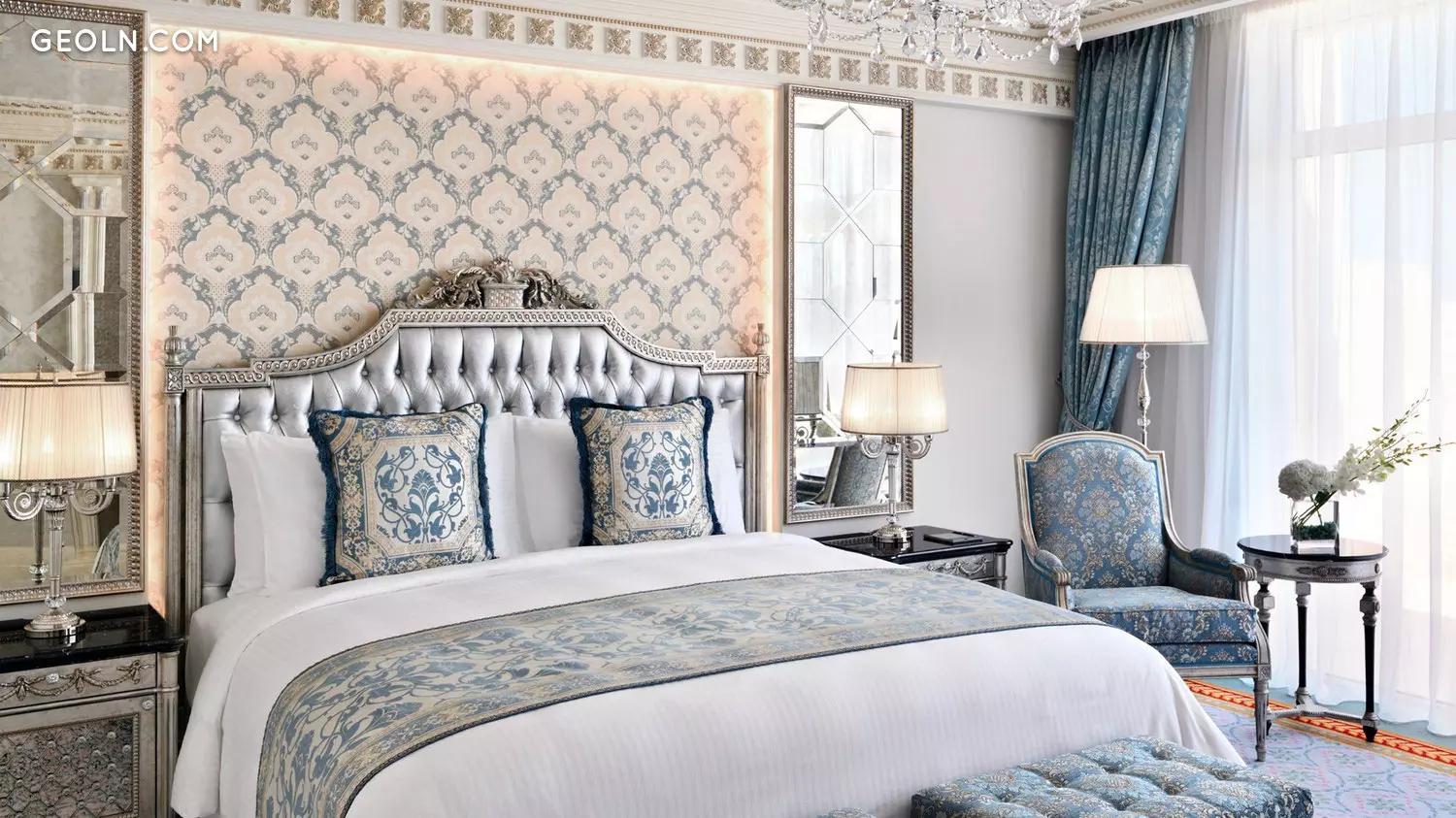 所有别墅和公寓均采用皇家室内设计,因为仅使用了最优质的材料。带有落地窗的宽敞浴室享有波斯湾的壮丽景色。大镜子,时尚的灯具和大理石装饰看起来很棒。房间的装饰还使用许多镜子,明亮的大理石地板,带金花柱的壮丽壁柱,营造出豪华的氛围。经典家具,纺织品和墙壁上的装饰品,四柱床和闪闪发光的枝形吊灯强化了这一点。厨房包含所有必需的电器。