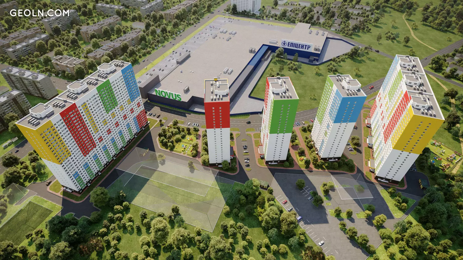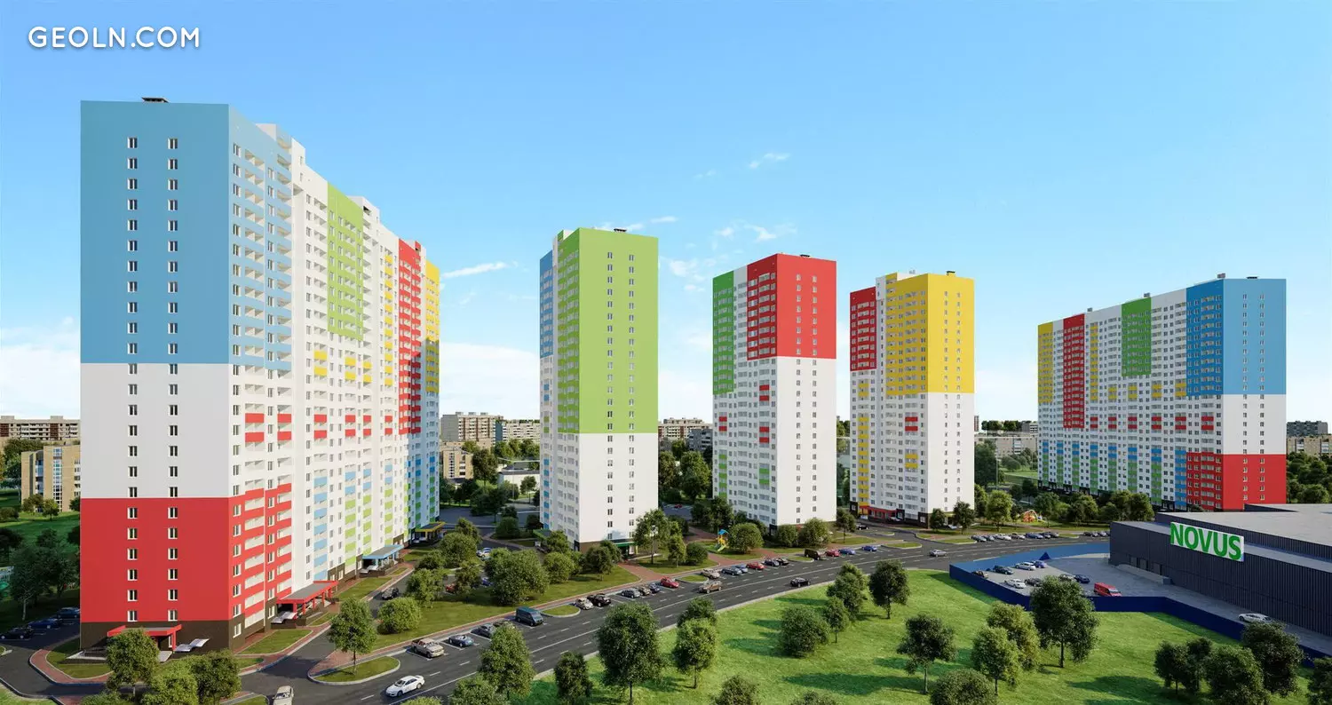 住宅区“ Atlant on Kievskaya”的名称反映了其独特之处-高25层的房屋在周围建筑中显得庞大而宏伟。建筑物的外墙以引人注目的外观而著称:外墙的彩色装饰结合了蓝色,红色,白色,石灰和黄色。全港将设有数个游乐场,休憩用地及停车场。