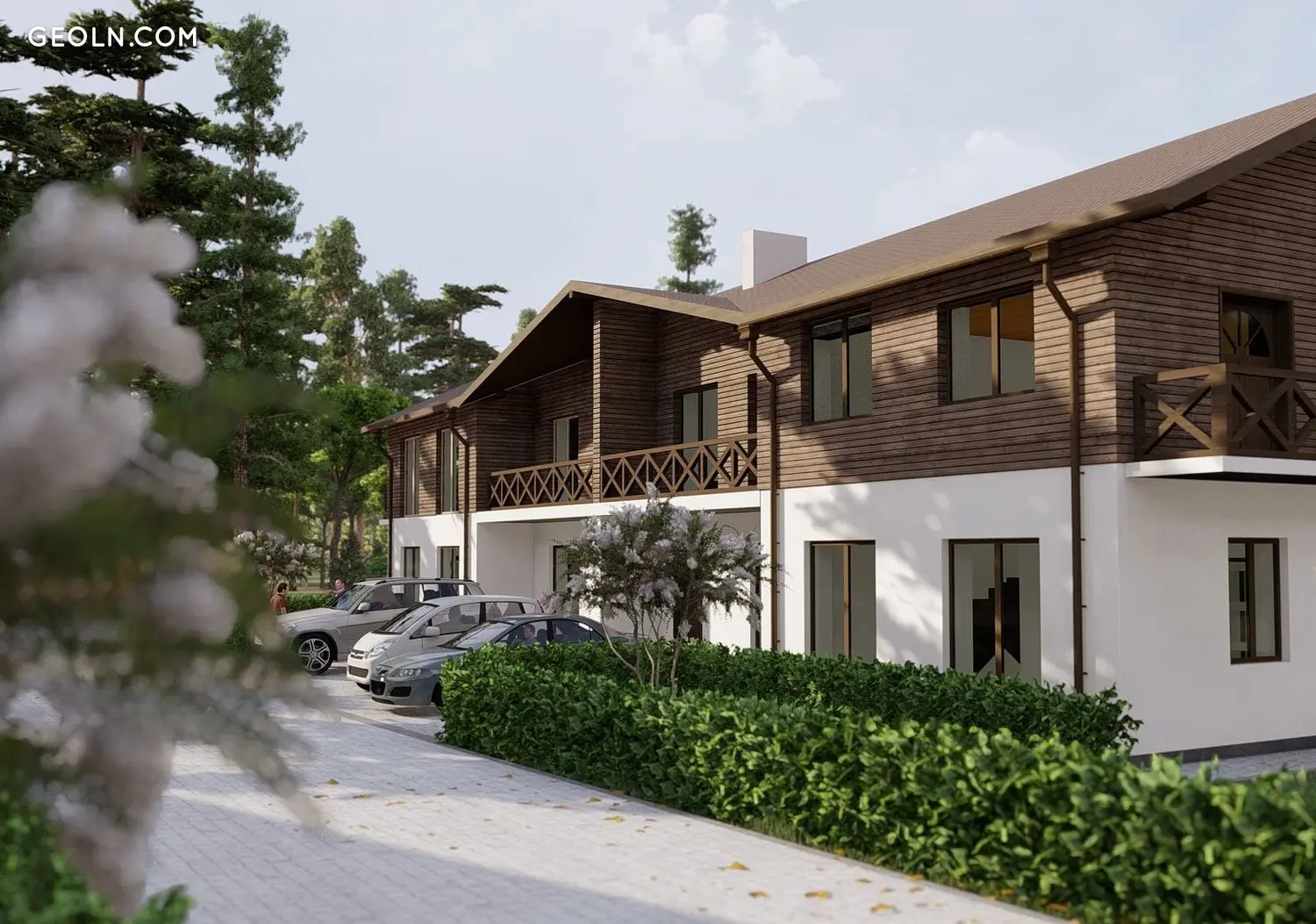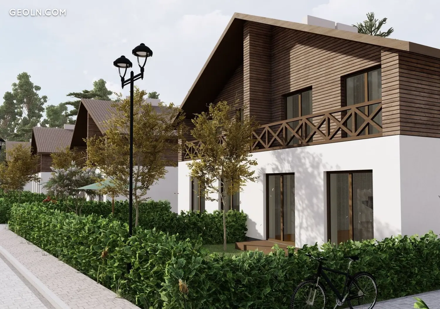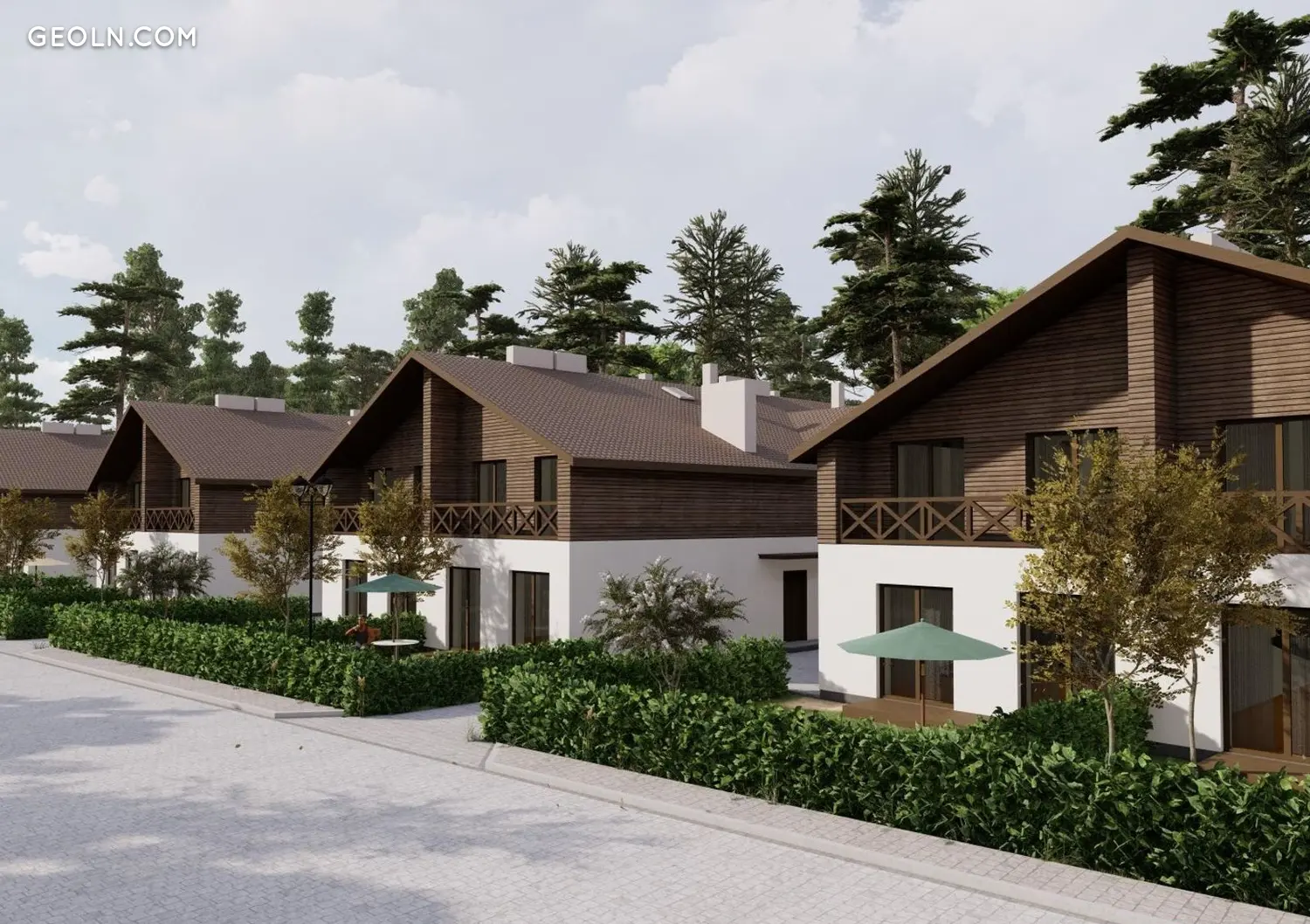 SB GROUP 和 ECOS 公司在 Bryukhovychi 的小屋小镇“Bruhsell”位于利沃夫最近的郊区,位于高级村庄的著名地区。街道上的综合体。 Nevelichuka, 4a 四面环绕着森林,保护居民免受噪音和喧嚣的影响,使周围的空气充满氧气。