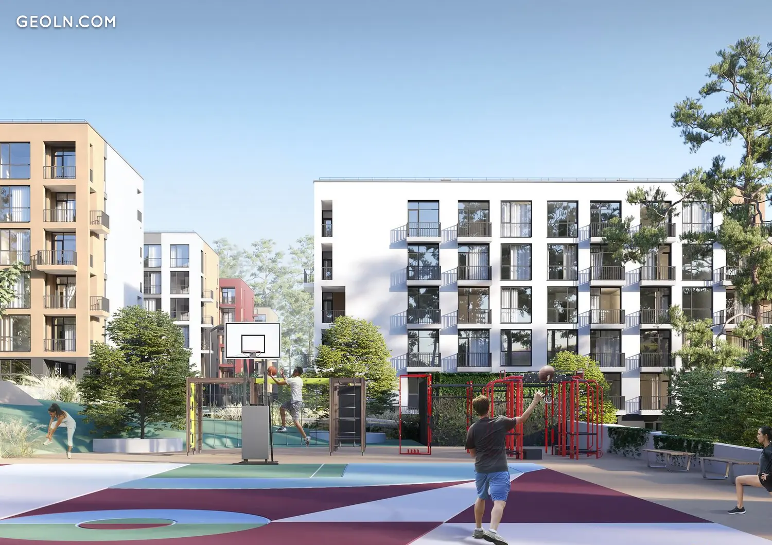 将有绿色休息区、儿童游乐场、健身区、足球、篮球和排球游乐场。公寓设有开放式阳台和节能的全景玻璃窗——因此房屋将明亮舒适。