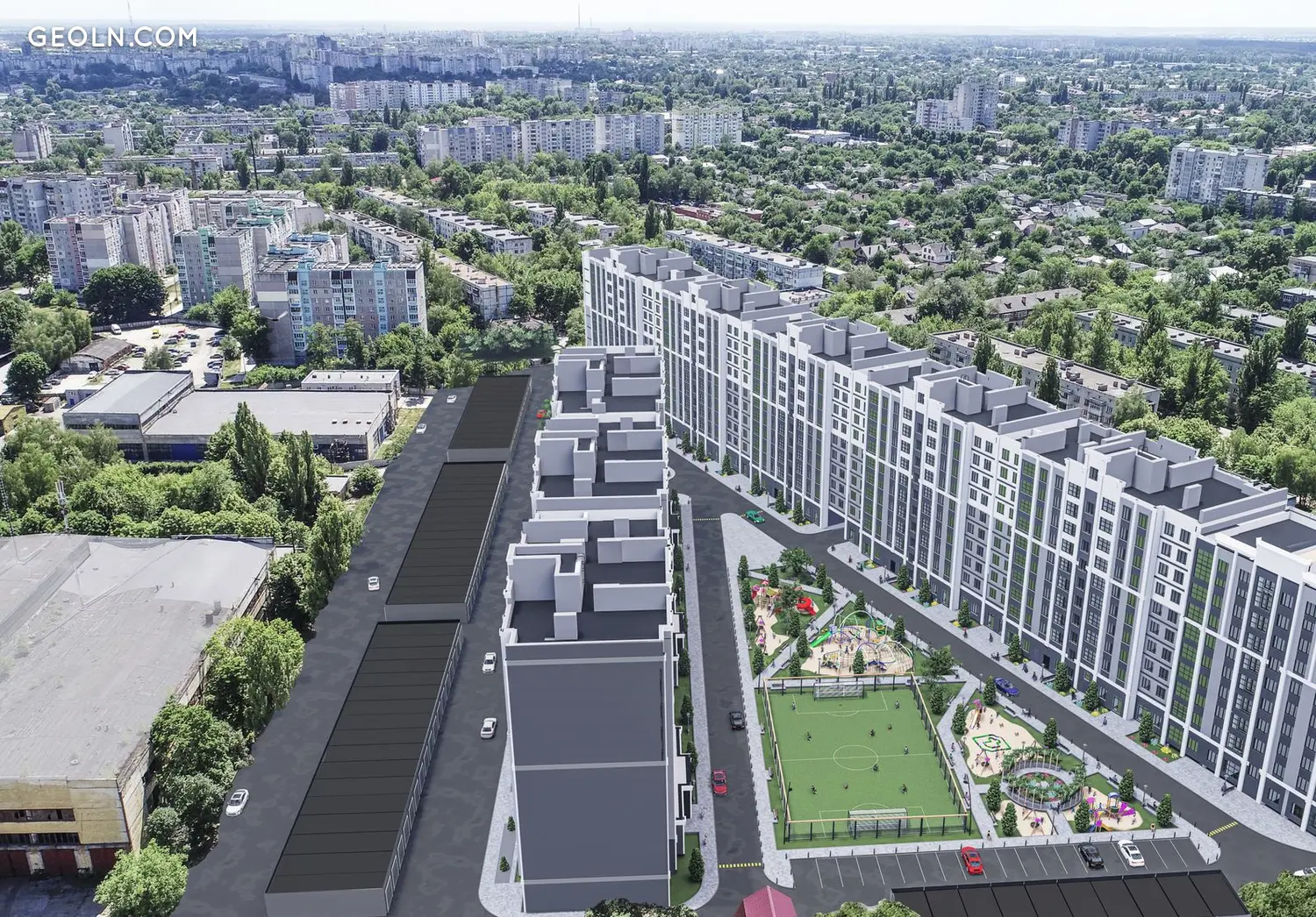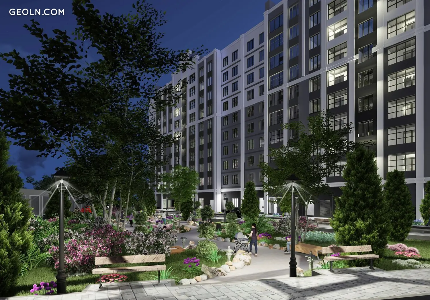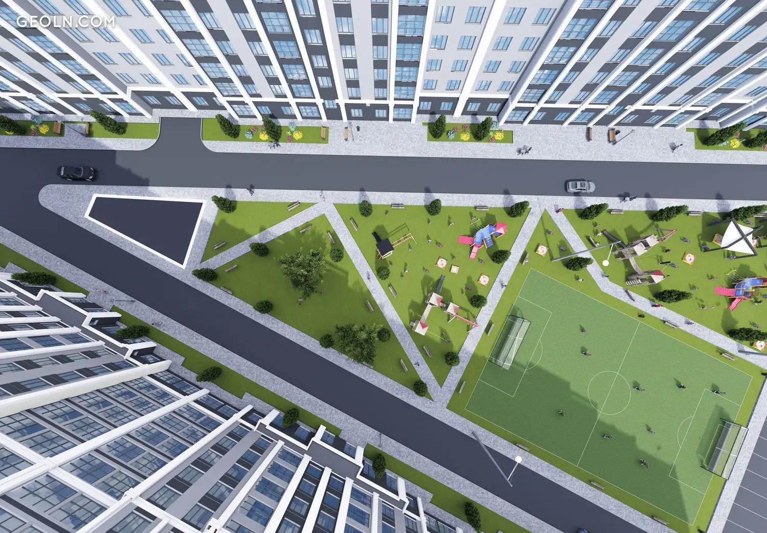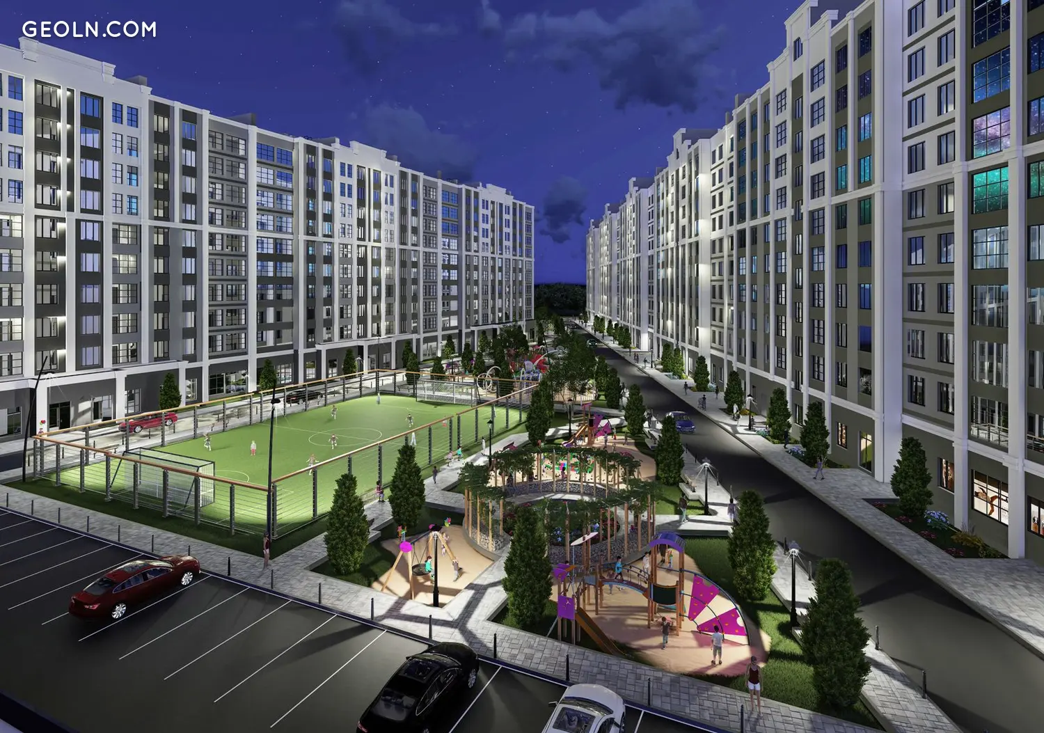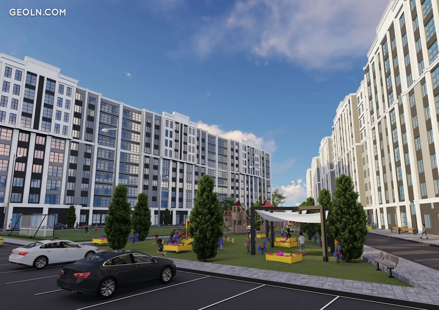 庭院将设有儿童游乐场、健身中心和团队运动游乐场。还提供自行车停放处和宠物。在房屋的底层将有用于商店、药房、美容院和其他基础设施的商业场所。