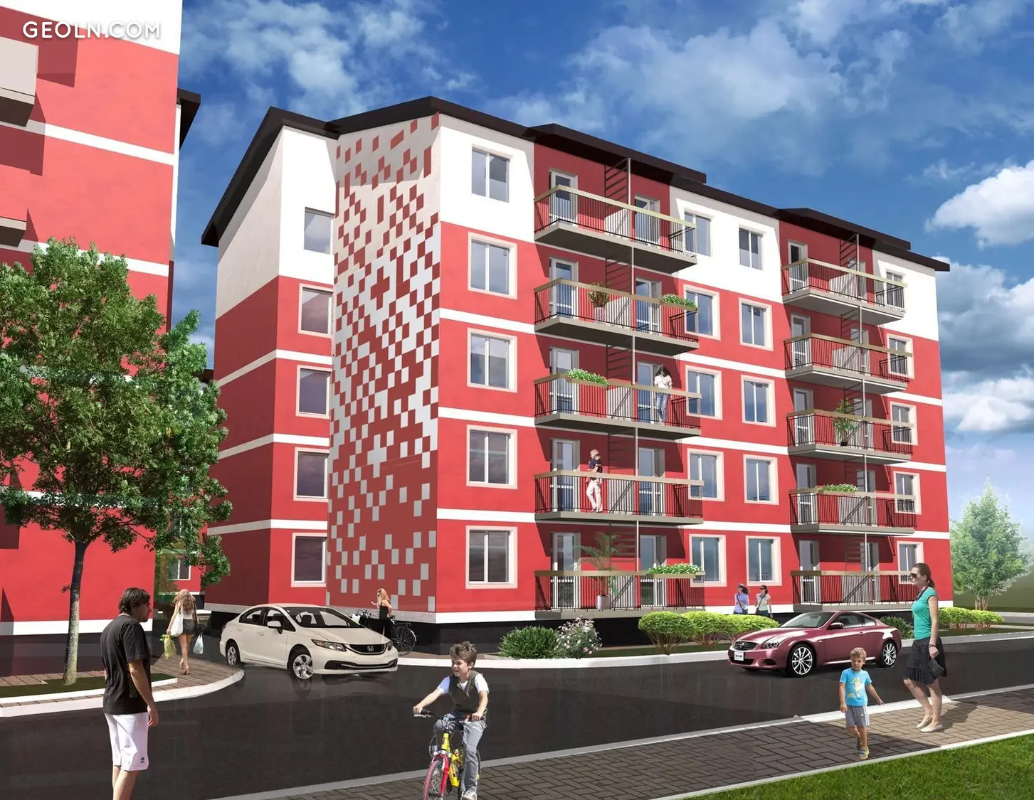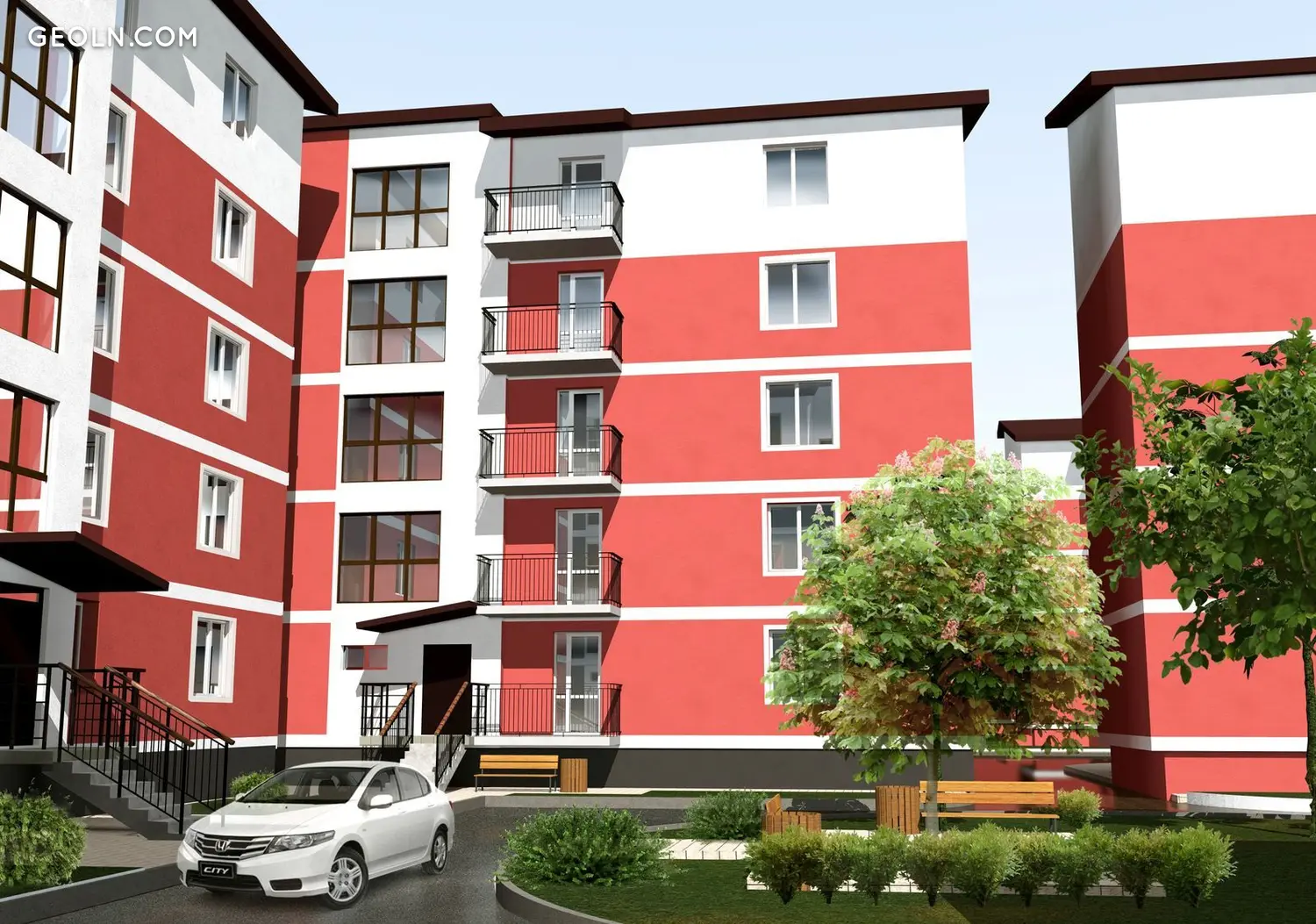 这是一座三段式五层砖砌建筑,外立面采用聚苯乙烯板隔热。入口配备电梯,安装金属入口门。