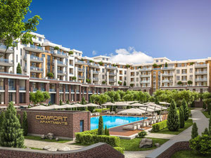 住宅综合体“凯旋”正在基础设施发达的地区建造:交通枢纽、健身中心、美容院、银行分行、咖啡馆、超市、购物中心、药房、医院、“雪崩”游乐园以及幼儿园和中学学校学校。