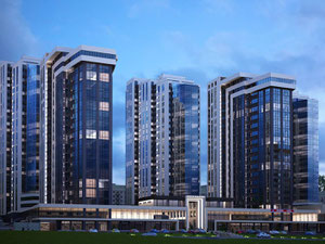 首先映入眼帘的是优雅的外观设计:严格的直线条,内敛简洁,镀铬金属的优势,以及玻璃和塑料。该综合体的层叠楼层不仅创造了独特的建筑,而且还提供了多样化公寓布局和创建带全景休息区的露台的功能机会。