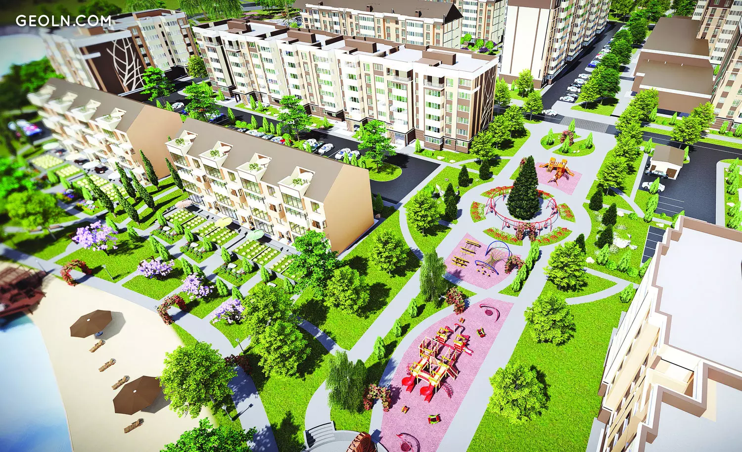 除了层数不等的住宅楼外,还将在这里建造所有必要的生活基础设施,这些基础设施将与房屋同时建立,并在建造的第一阶段供那些购买公寓的人使用。
