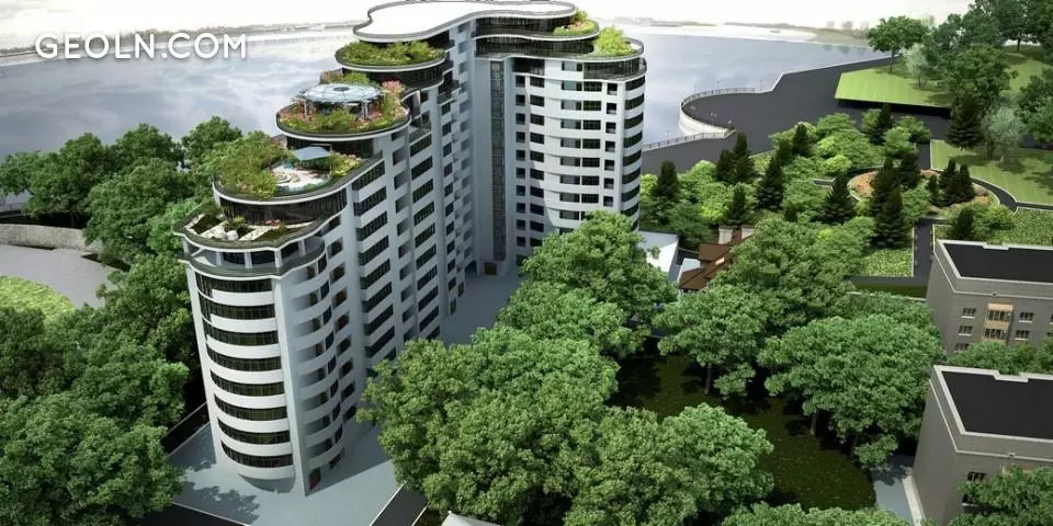 街上的住宅区“风帆” Mazepa,140a是俱乐部型酒店。它的设计考虑了建筑过程中使用的建筑和技术的最新趋势。