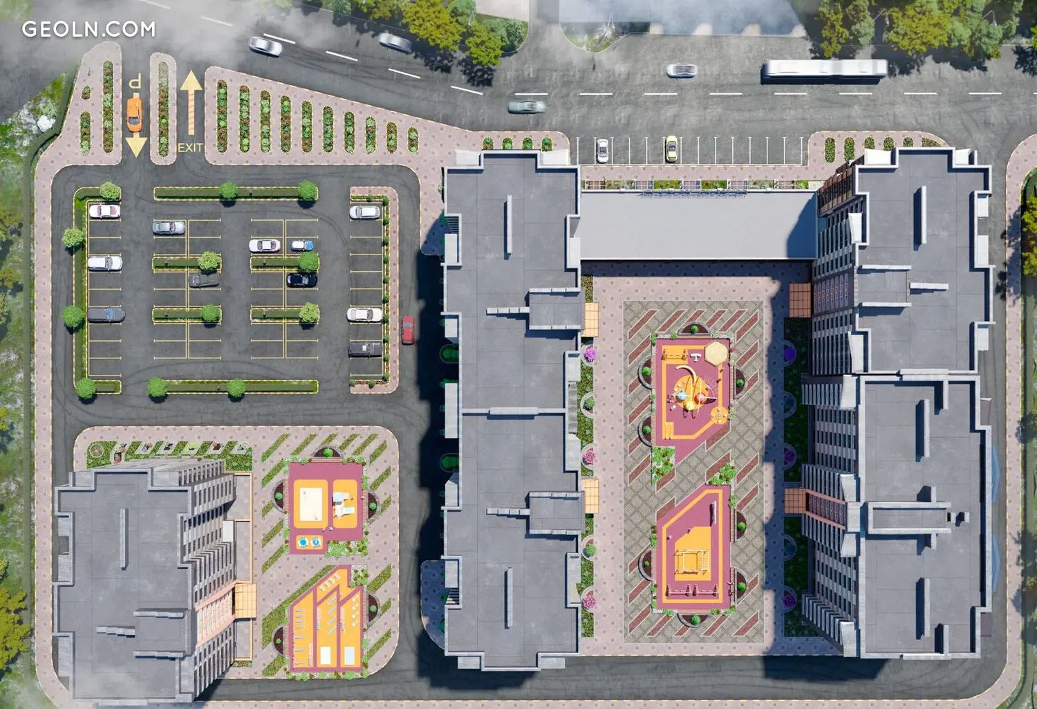 “奥林匹克” - 舒适等级的住宅区。这些房子有十层,并以字母“P”命名——因此,它们将院子的空间与街道和噪音分开。