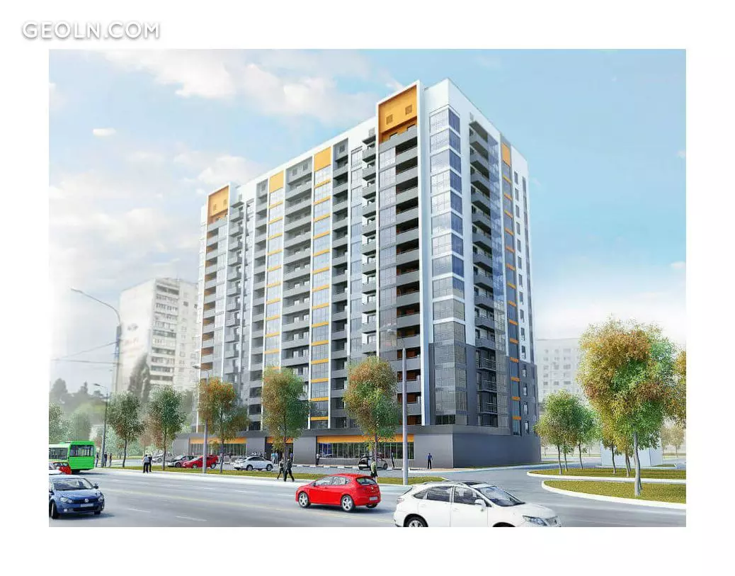 Slobozhansky 2季度住宅区-是一栋公寓楼,楼高16层,呈p形。建筑物的主立面包括4个部分,将朝向大道。