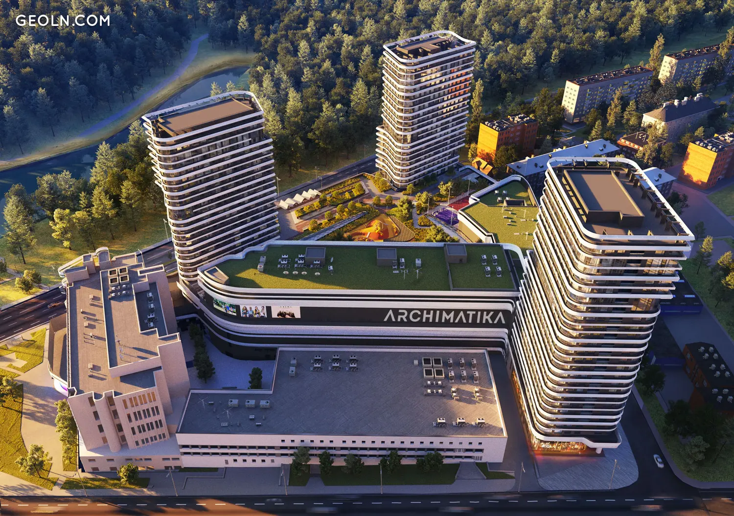 该项目由建筑工作室ARCHIMATIKA开发。在这个项目中,建筑师们完成了三项任务:领土的翻新——在综合体的场地上是一个旧的电影厂;创建一个多功能综合体——该地区的购物中心负责它;和建筑挑战 - 由于其风格,白线将成为该地区的建筑象征。该项目入围国际专业竞赛世界建筑节。