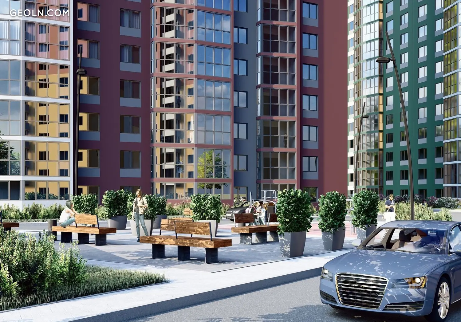 新住宅综合体“米洛斯”项目包括五栋27层高的建筑,总体上具有现代建筑和概念。毗邻的区域包括几个带有游乐场、体育馆和休闲绿地的庭院。汽车有小型地上停车场和可停放594辆汽车的地下停车场。