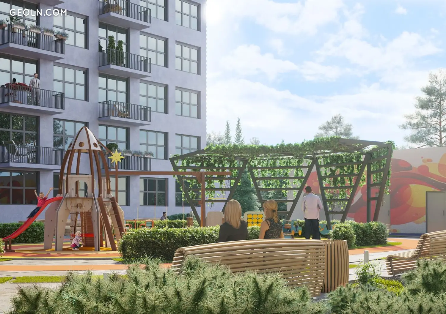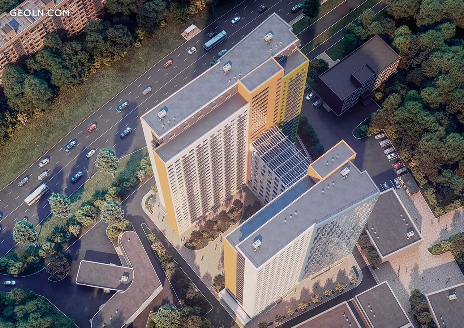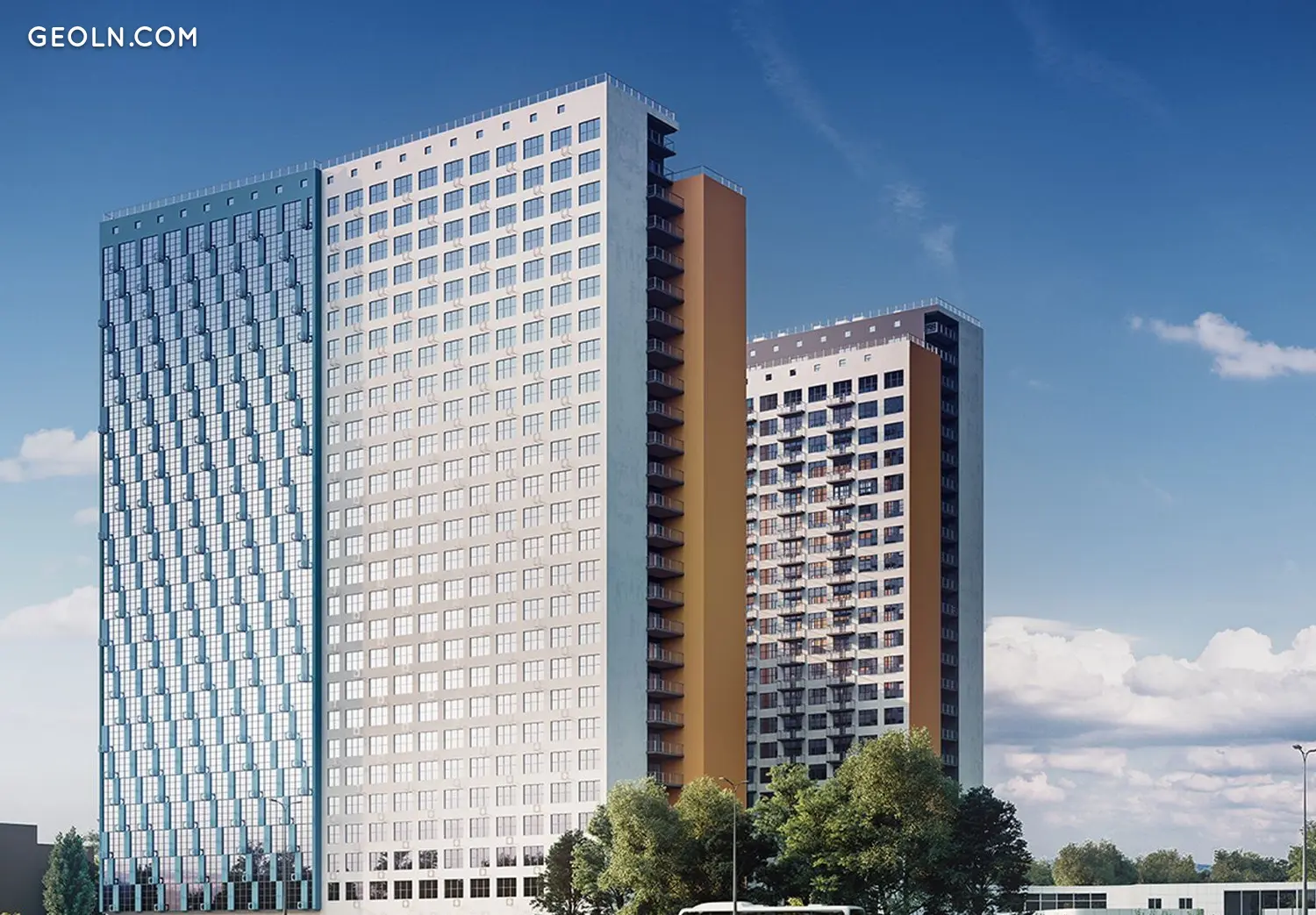 为了在双子屋综合体的居民公寓中创造更多光线,建筑师提供了带有全景玻璃的扩展窗户。居民还可以使用第 2 部分的公共室外屋顶露台。