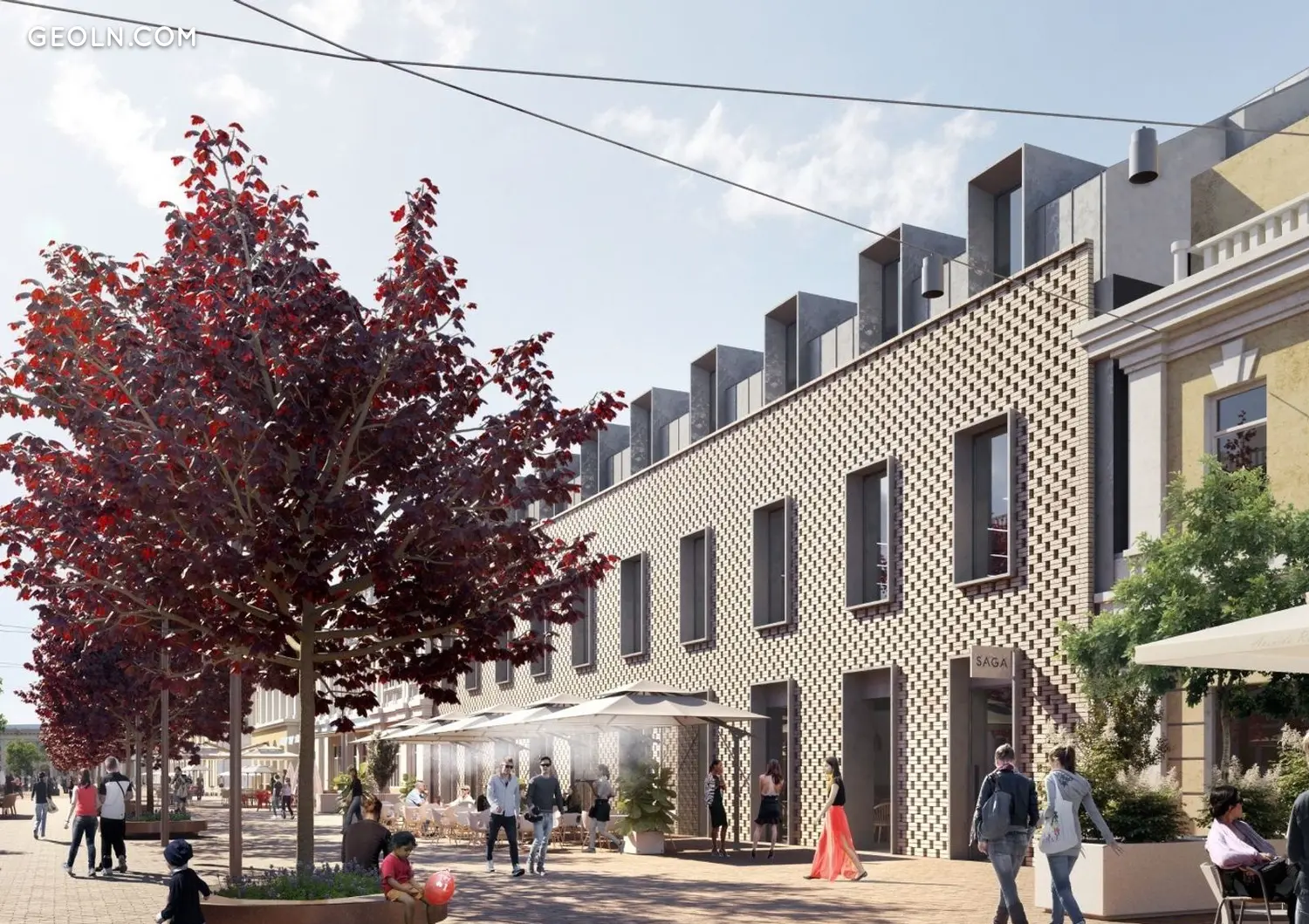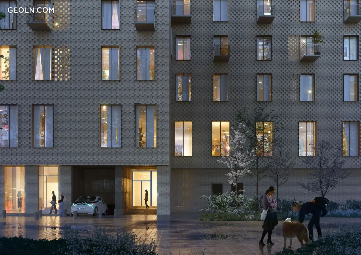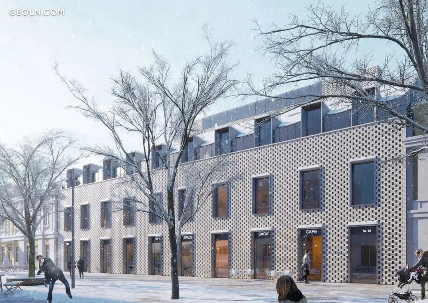 综合体的住宅和商业部分由行人走廊连接。住宅部分位于场地深处,建筑物的高度不会干扰周围历史建筑的整体。起居区的外墙也将由多孔砖制成。