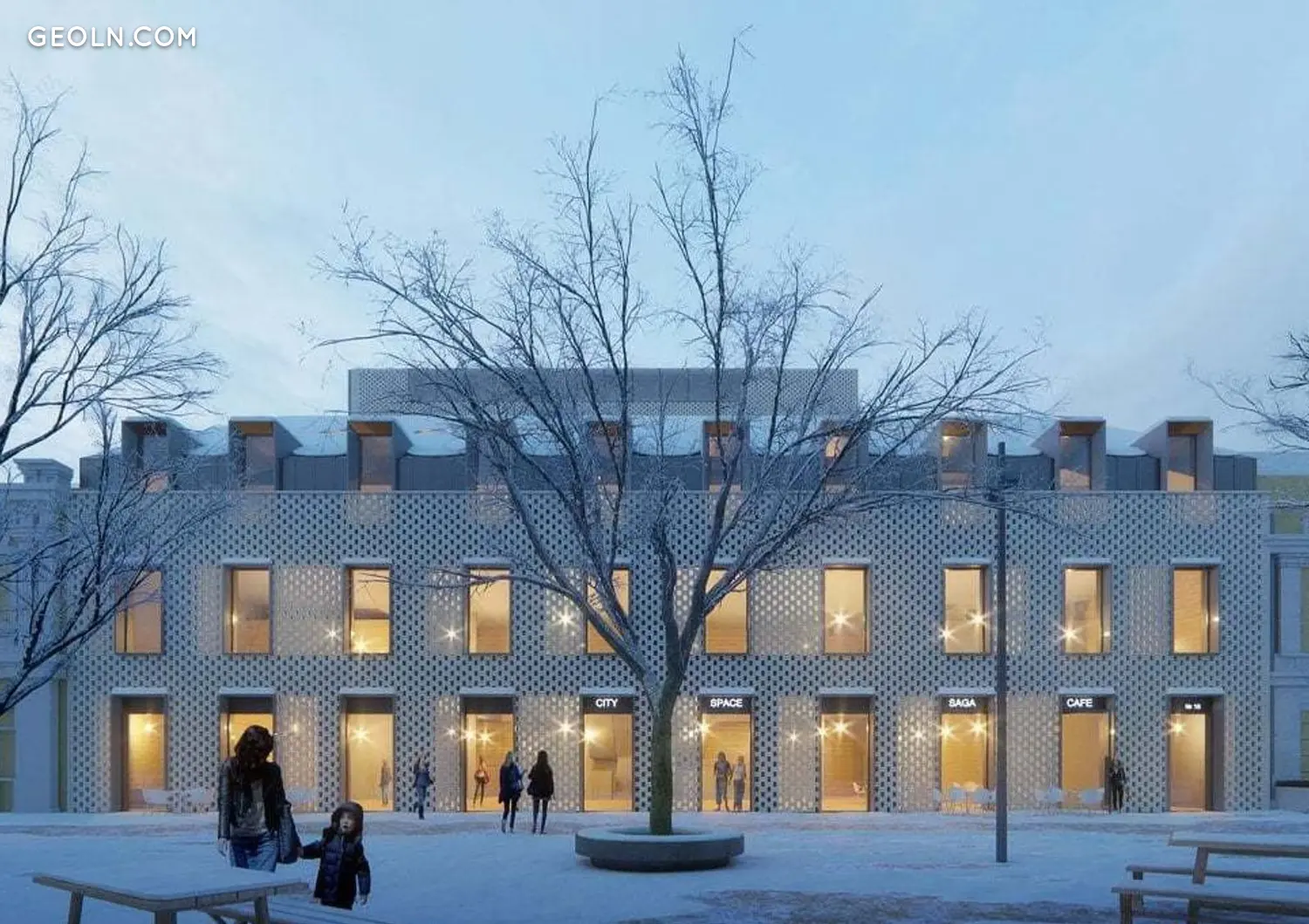 SAGA City Space商务中心面向Sagaidachnoho街,以韵律、小楼层和色调融入历史建筑,但又不模仿往年的建筑。穿孔砖砌将装饰外墙。除了外观,砖的特点是房子会“从内部发光”——在黑暗中它将成为建筑物的装饰性照明。