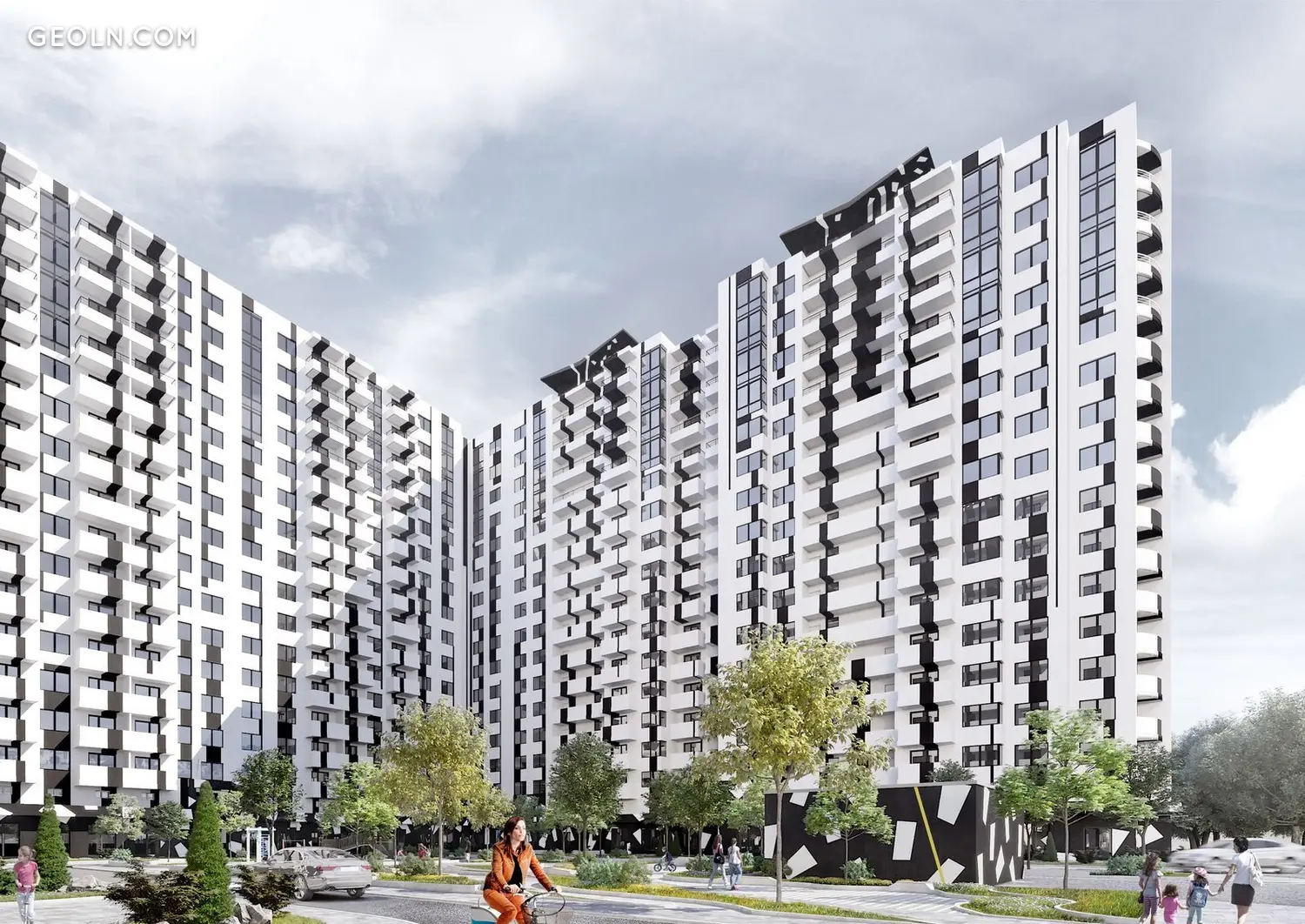 Home and Park Comfort House 由两栋房屋组成,其外墙将以黑白对比装饰,使鲍里斯波尔中心部分的建筑多样化。