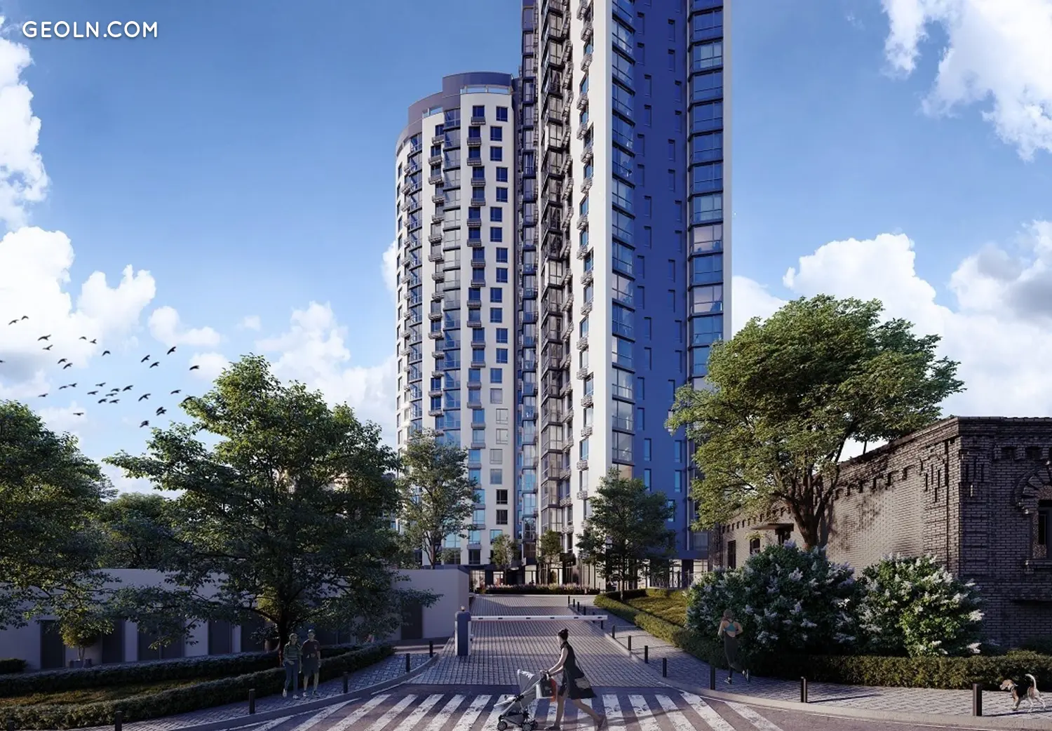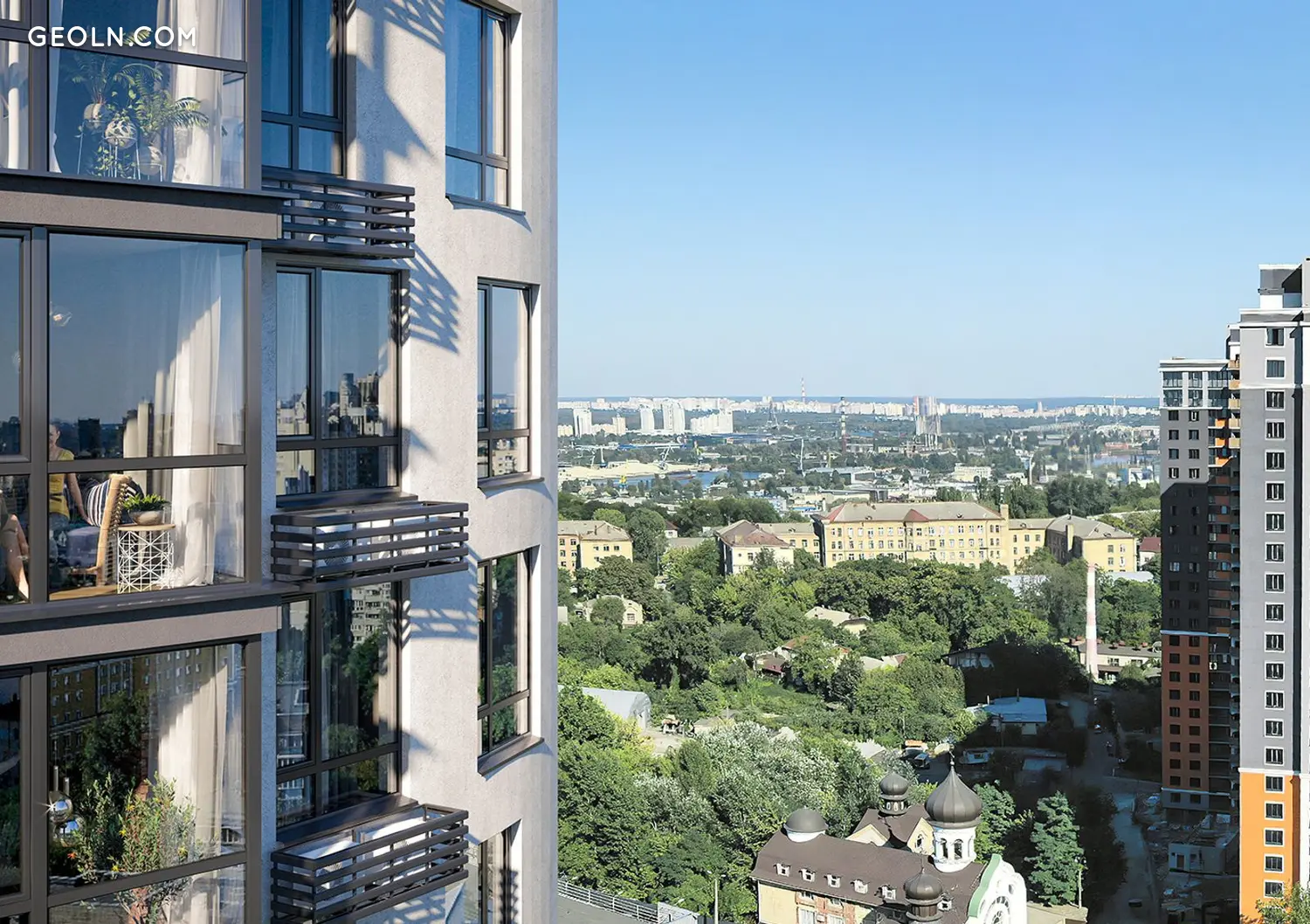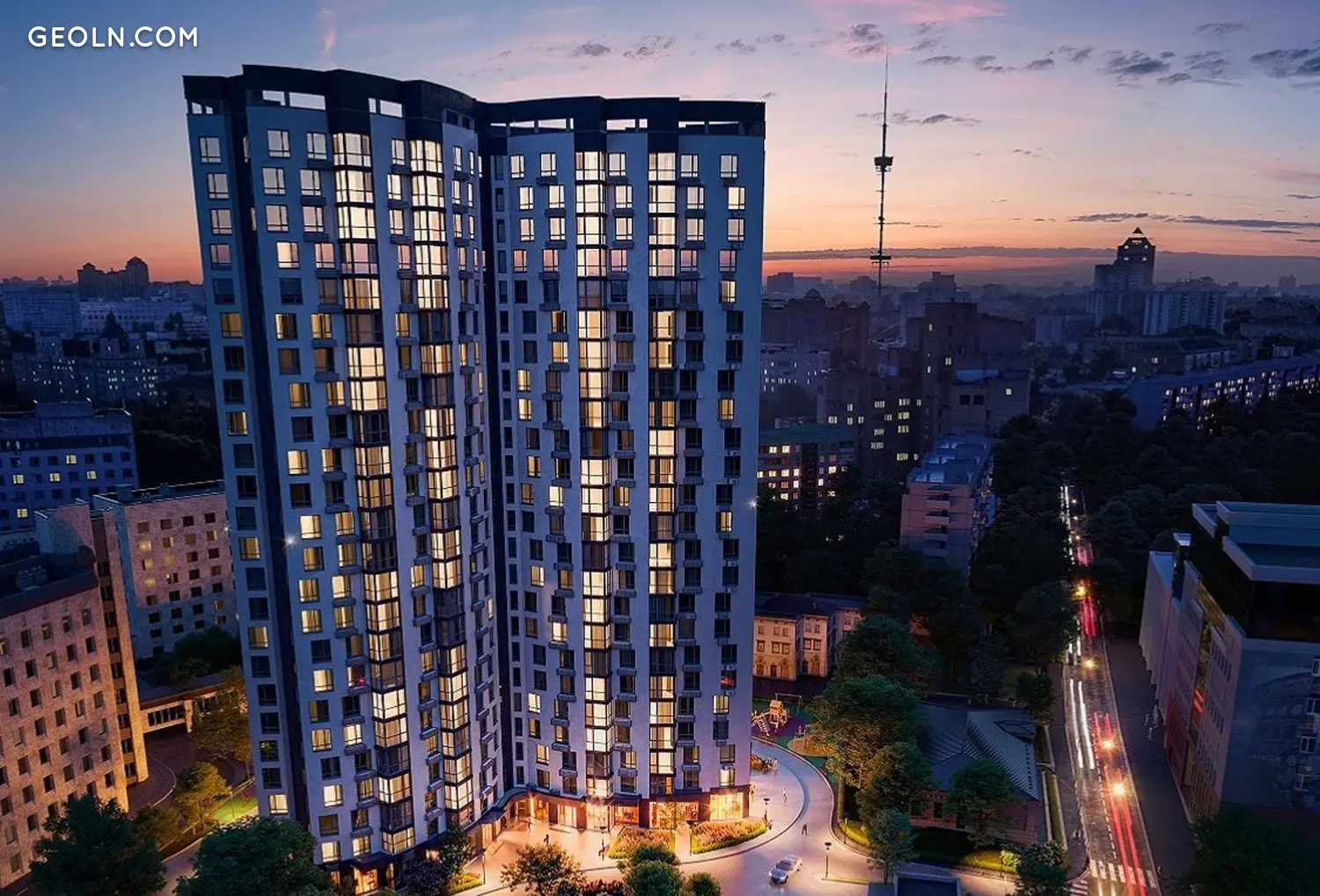 一座位于基辅历史中心的现代 24 层住宅综合体是关于象征的。该建筑正建在一个柱状上:下部有一个地下停车场,顶部是一个带景观的院子,其中包括游戏、运动和娱乐的功能区,以及一个客用停车场。