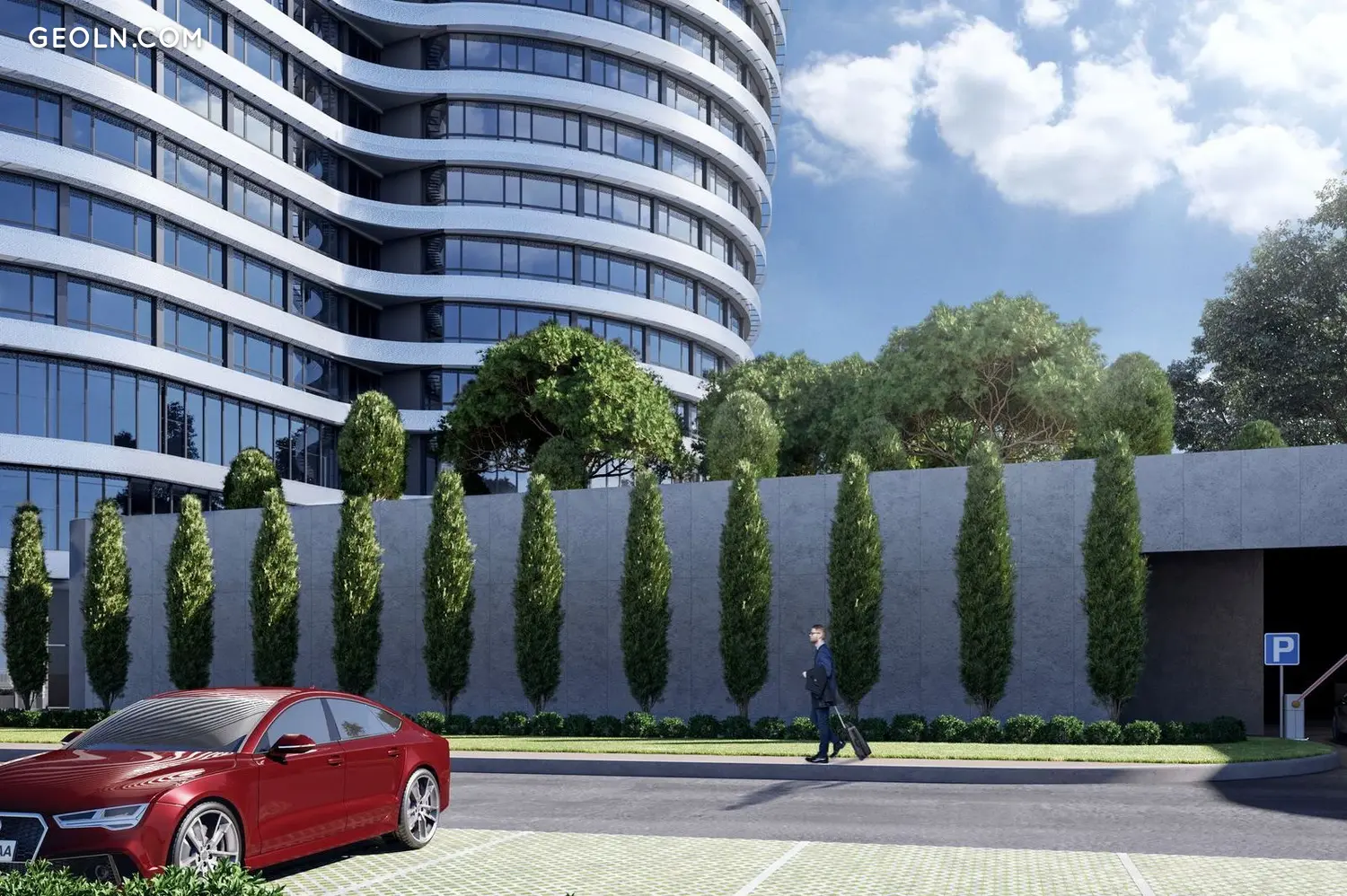 综合体的生活空间从 3 楼开始——第一层是为商店、餐厅、办公室和其他居民有用服务的商业场所而设计的。