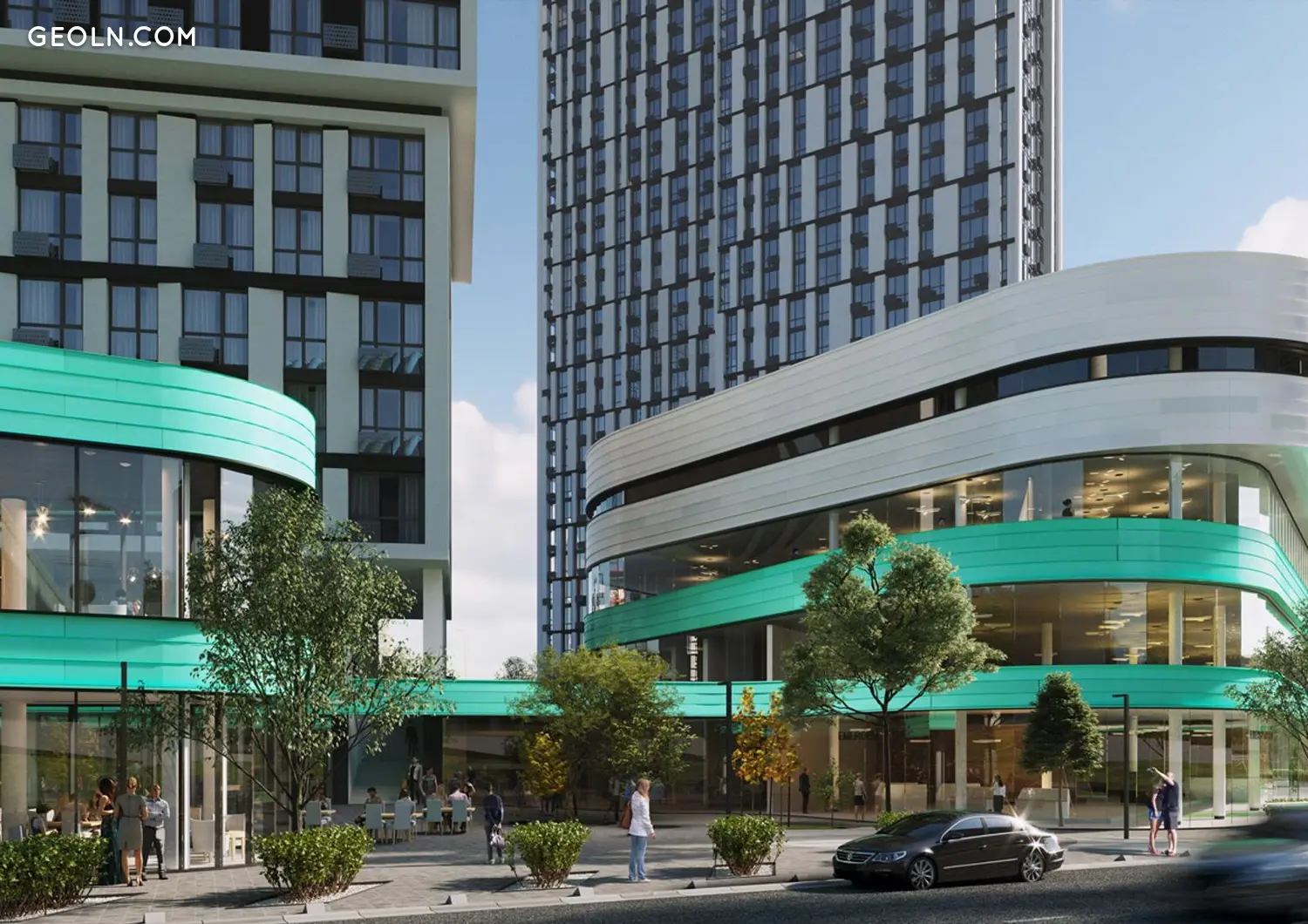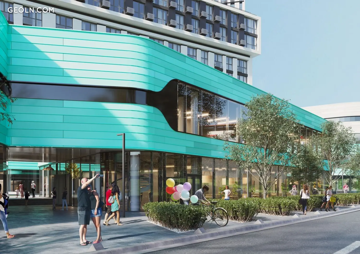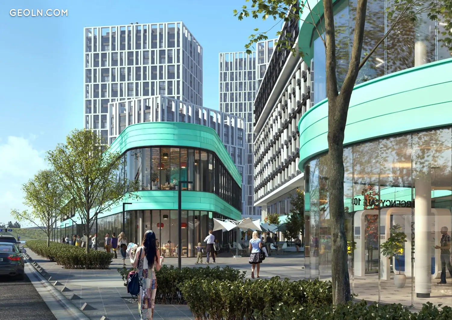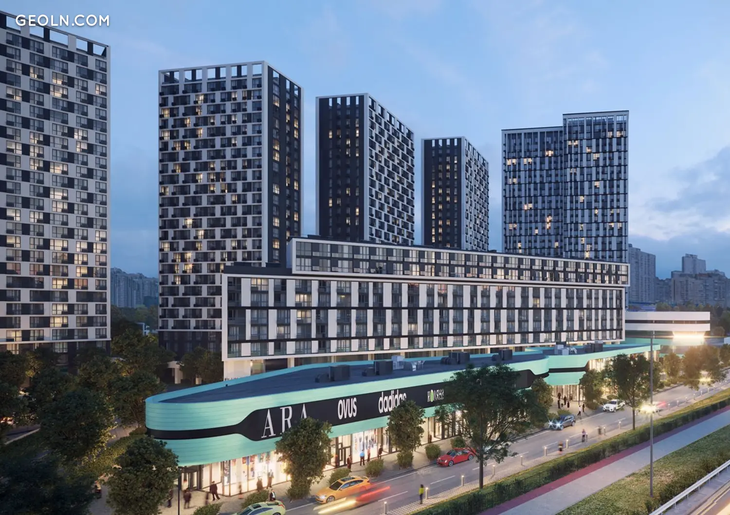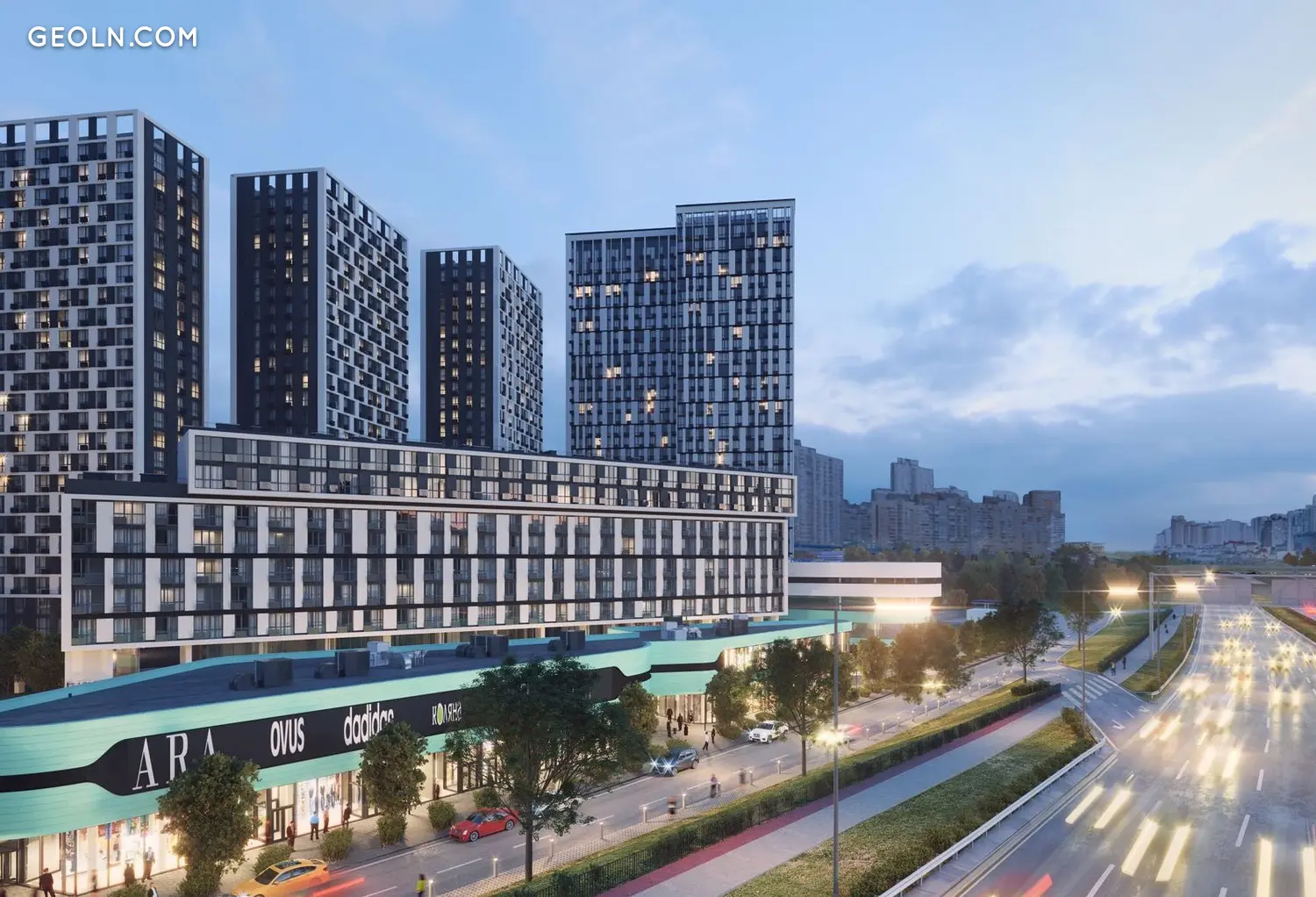 Slavutych 2.0 内部基础设施开发项目包括建筑物底层的商业场所和在综合体领土上建造购物中心。