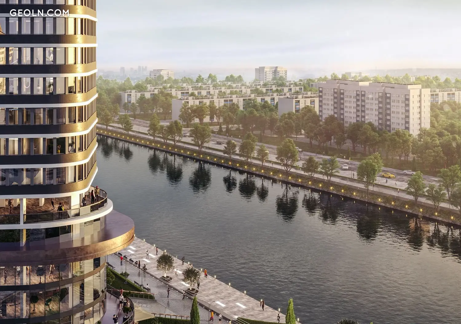Rusaniv Residence 是位于 Rusaniv 运河第一线的住宅区。该综合体的五个部分由一个共同的柱状部分联合起来,基础设施将位于该部分。由于综合体的优越位置,有一个出口可以通往路堤,可以欣赏到 Rusanivka、植物园的斜坡和祖国纪念碑的景色。将在邻近地区实施“无车院子”的概念,其中包括儿童游乐区和休闲场所。同样在柱状部分的屋顶上将是一个可以欣赏城市全景的综合体居民的娱乐空间。公寓将在整个楼层的高度上安装全景窗户,以保证自然光的正常。