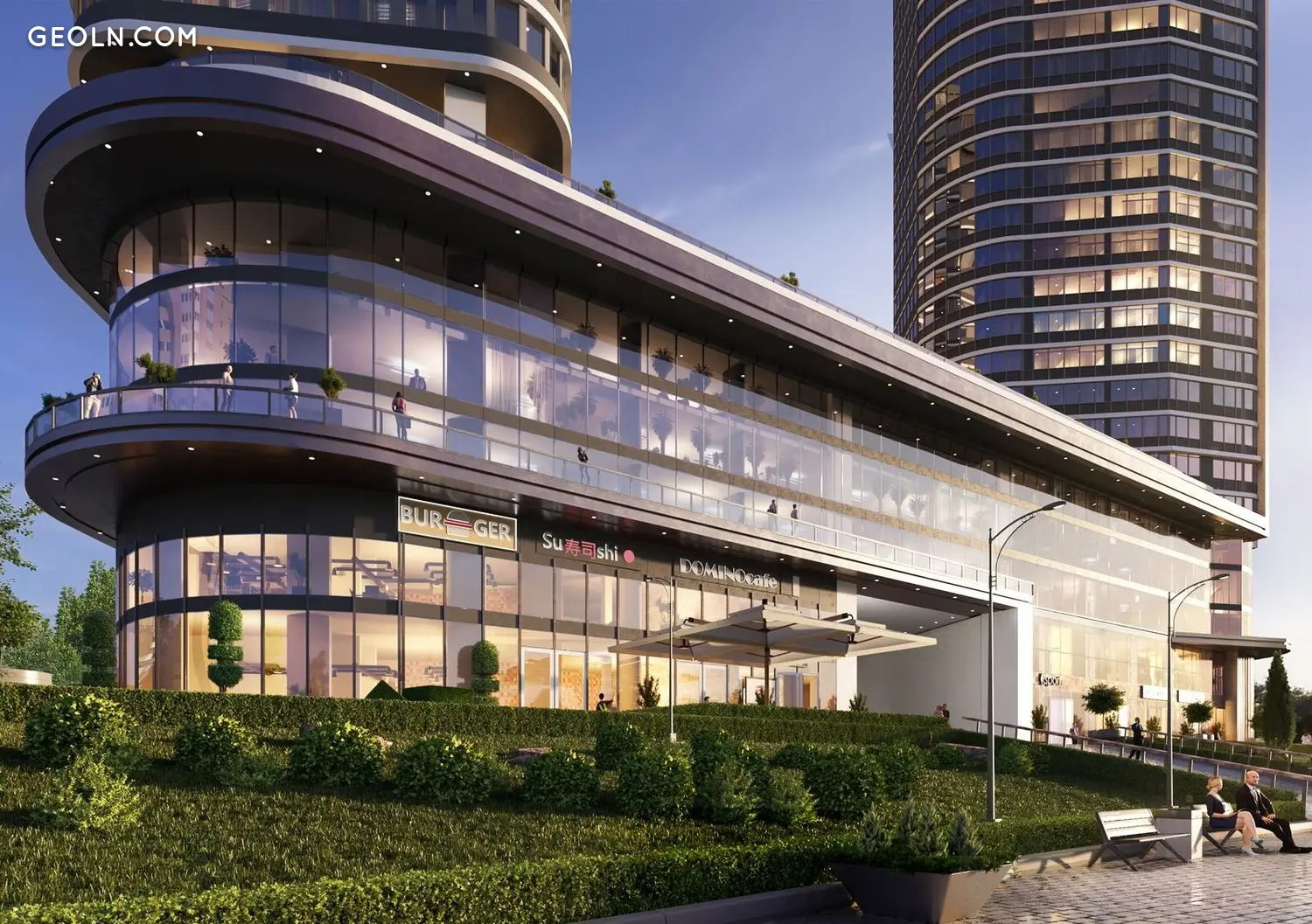Rusaniv Residence 综合体的内部基础设施包括位于底层的幼儿园、餐厅和咖啡馆的商业场所。
