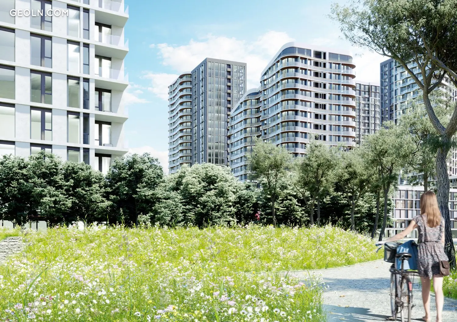 在设计住宅综合体创世城时,开发商坚持“真正的价值永远在里面”的原则——更多的光线、绿化和步行空间,减少不必要的细节。该项目设想建造八栋 16 层和 24 层高的房屋,风格、形状和建筑风格各不相同,但以一个共同的理念团结在一起——现代设计、极简主义、功能性和技术的共生。所有部分都规划了全景玻璃窗,以保证自然光进入房间并改善公寓的视野。