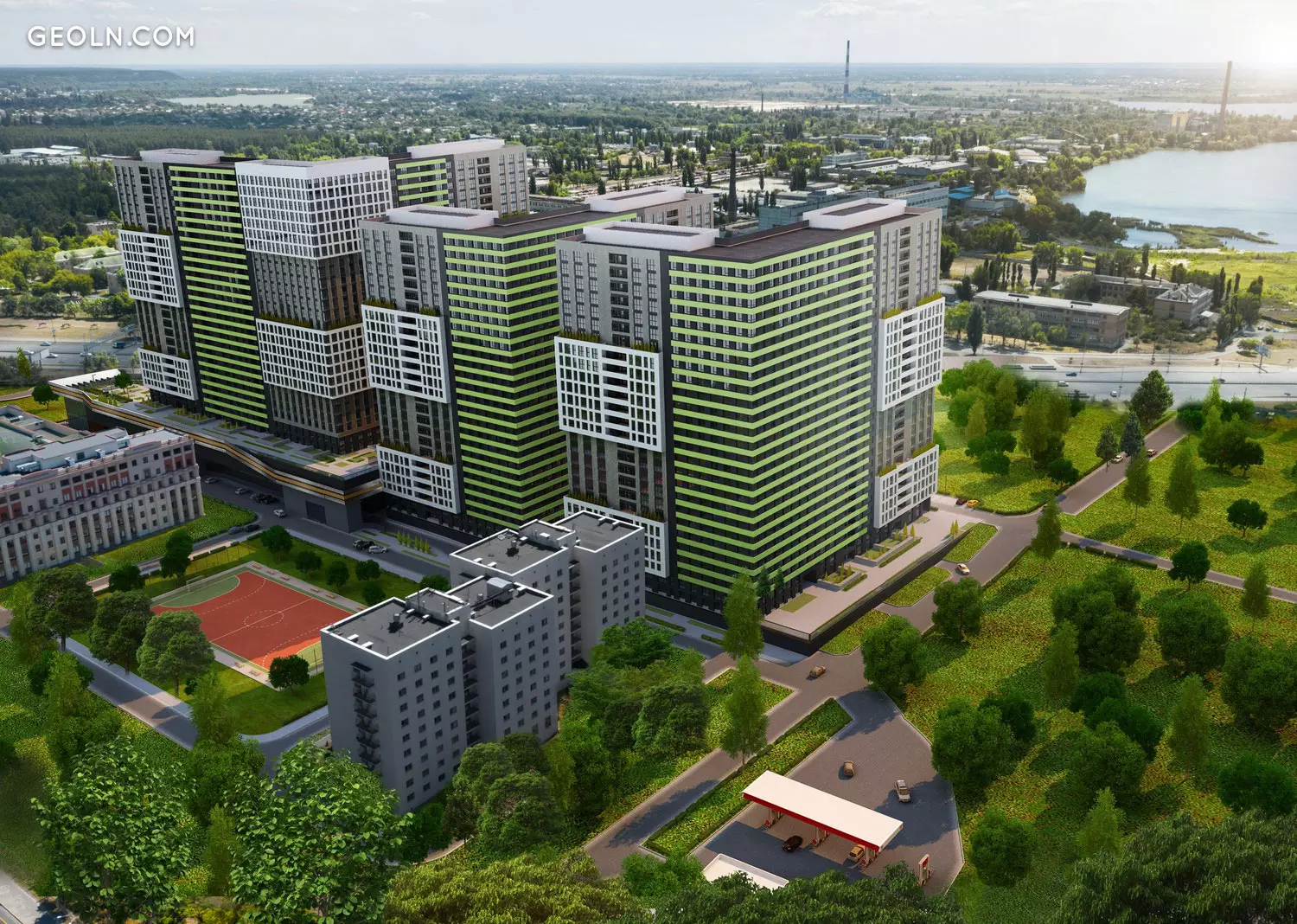 住宅区由三座25层高的房屋组成,每部分房屋都以字母“ G”的形式放置,形成了独立的舒适庭院。工作分几个阶段进行。