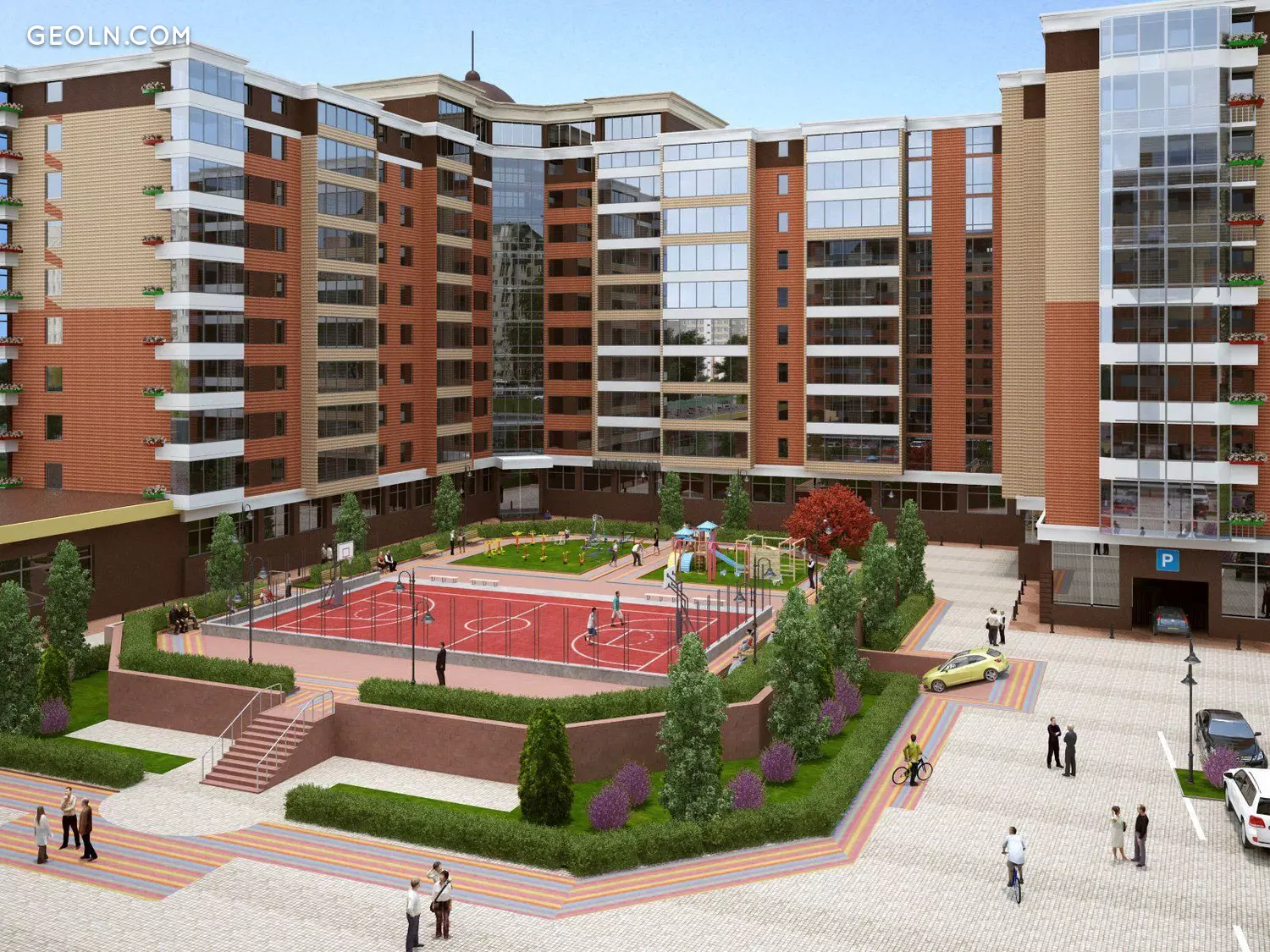 封闭的庭院,以“没有汽车,没有陌生人”为概念,设有步行小径,方便成人和儿童游戏的角落