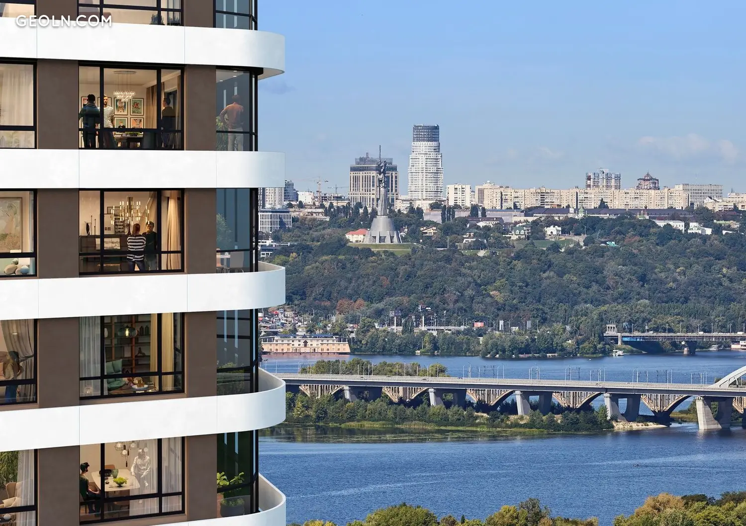 住宅区很棒 - 第聂伯河畔的第一条线。房屋以每间公寓都有全景窗户的方式归还。建筑群的玻璃反射阳光、邻近地区和第聂伯河。