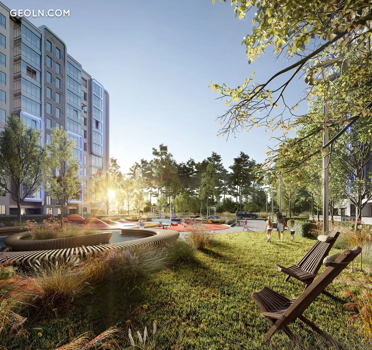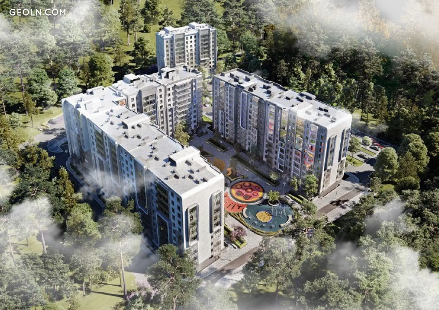 住宅综合体 R2 Residence 以其原始的建筑形式而引人注目,完全没有尖角。带景观的舒适室内庭院禁止汽车通行,并配备了适合不同年龄段的游乐场和运动场。新大楼的外面有一个开放式停车场,每个人都有足够的空间。