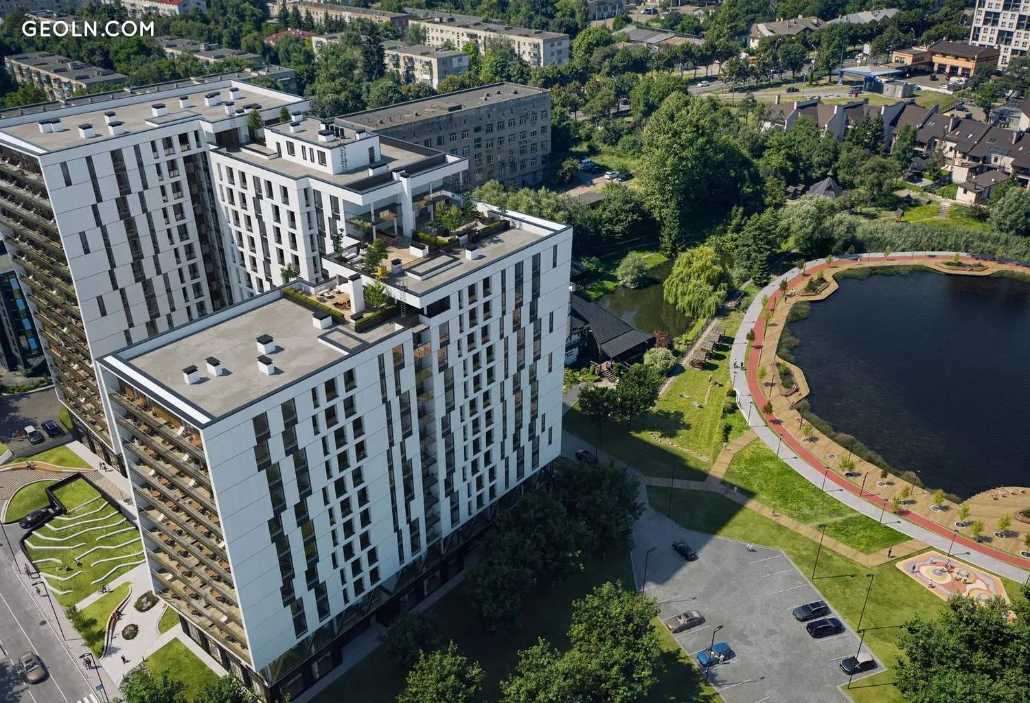 该综合体的一个特点是拥有自己的公园区,可通往湖泊。将领土划分为游乐区、运动区和休息区,将使未来的居民能够享受优质的空闲时间和舒适度。由于开发商将引入“院子里没有车”的概念,因此该地区对行人来说是安全的。地下停车场包括140个停车位,以及供客人使用的地面停车场。