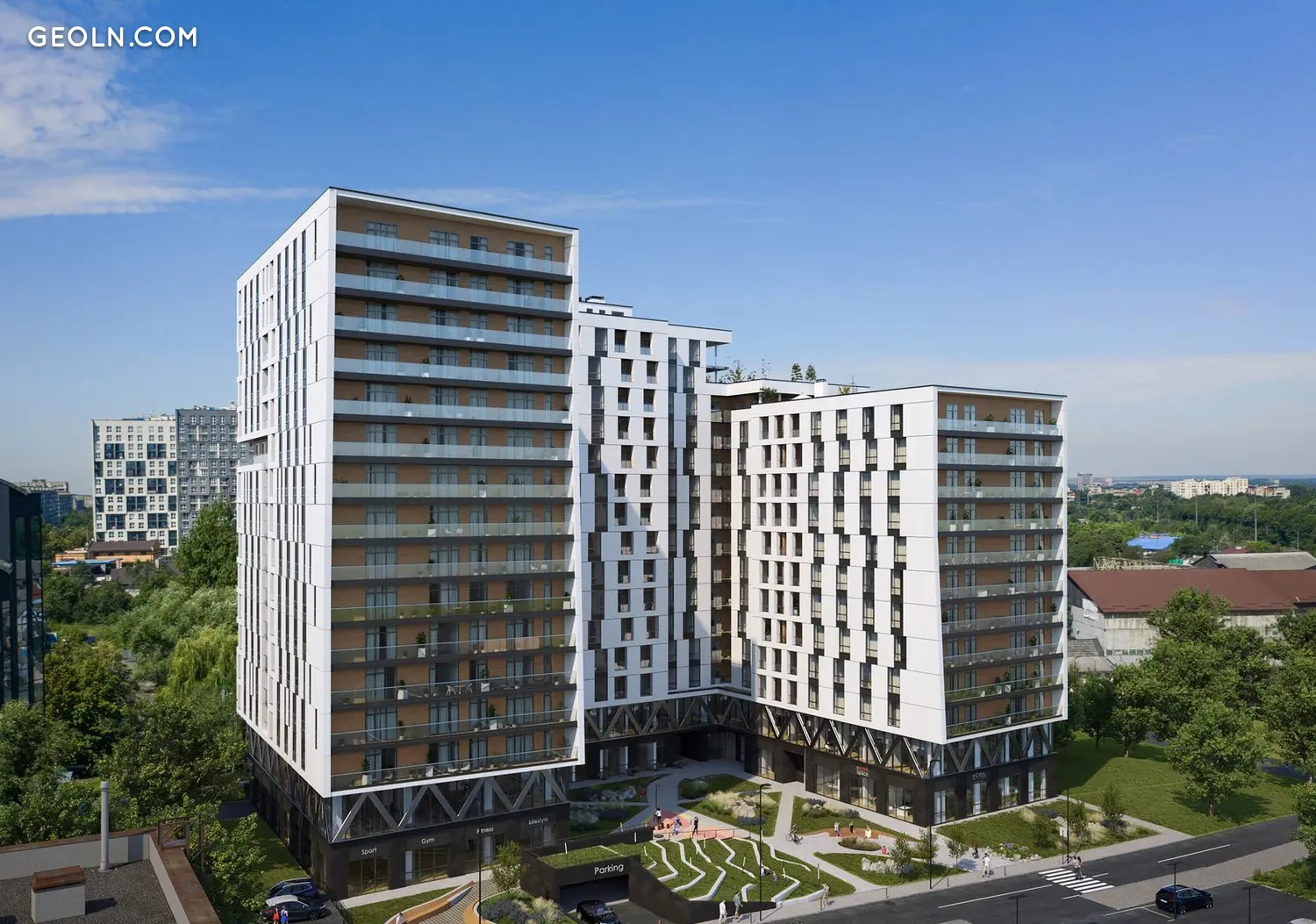 建筑群的内部区域将尽可能舒适地散步和休息。商业场所将开设健身房、儿童教育机构、咖啡馆、药店和商店。乌克兰美食“Hutsul Citizen”餐厅将在湖边工作。如果您想进行多样化的步行 - 步行距离内有带池塘的“坚果树林”公园、整洁的小巷和电影院,以及“Bodnarivka”公园。带健身中心和水疗区的利沃夫室内水上乐园距离酒店有 5 分钟车程。您可以在 15 分钟内步行到迪纳摩体育场和网球场。 FitCurves、Atlantic、Shulak GYM 和 Premium Gym 都在该地区的健身房开放。