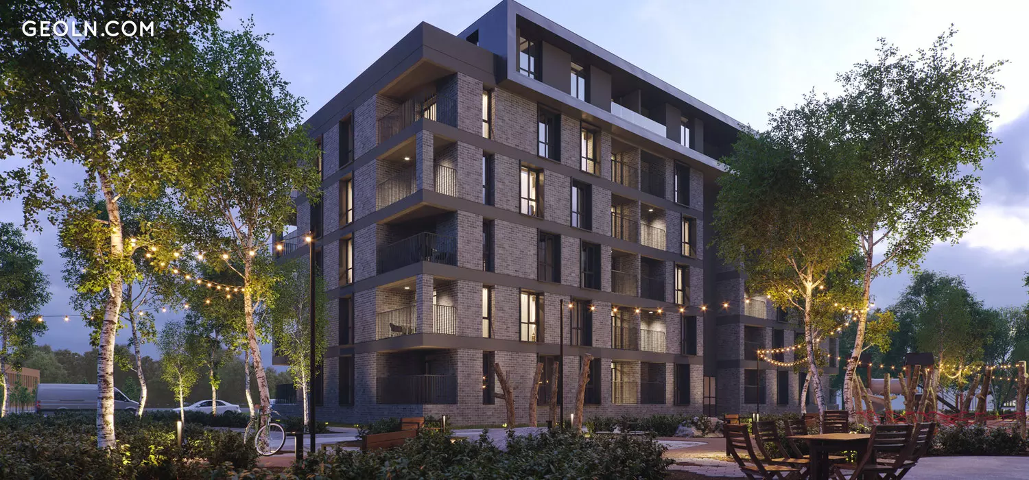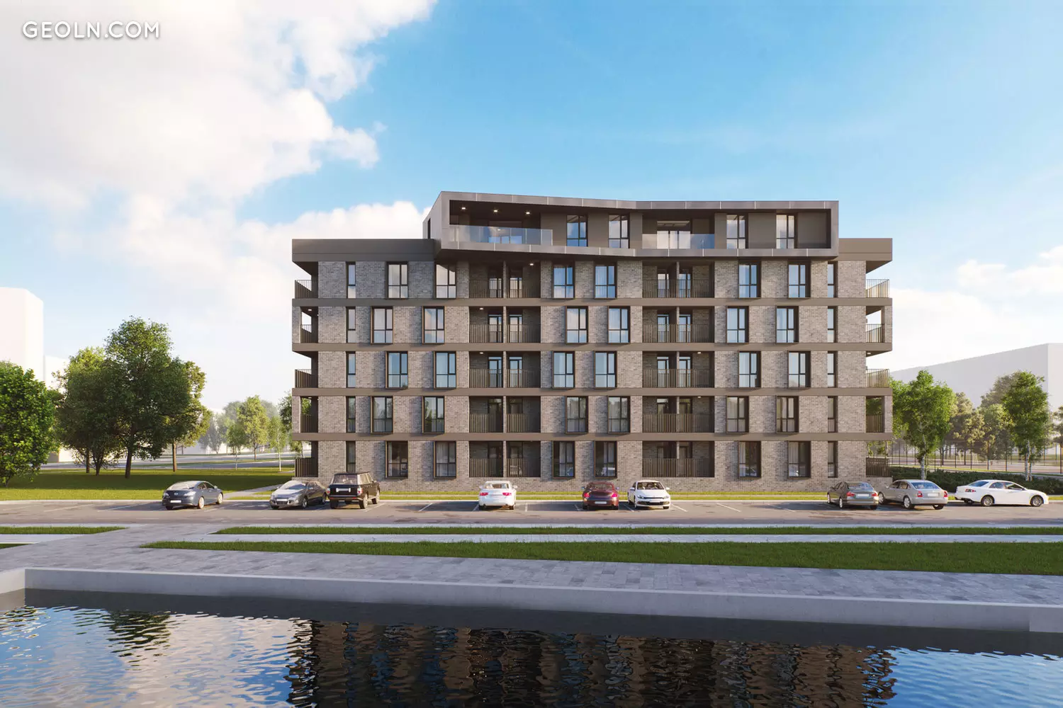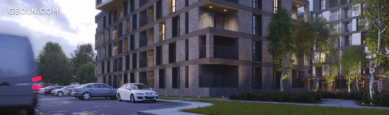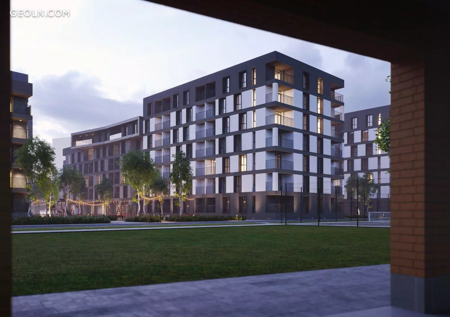 住宅区阿瓦隆时间是利沃夫建筑简约主义的代表:简单的几何形状,轻巧的建筑细节的对比,大面积的玻璃窗。