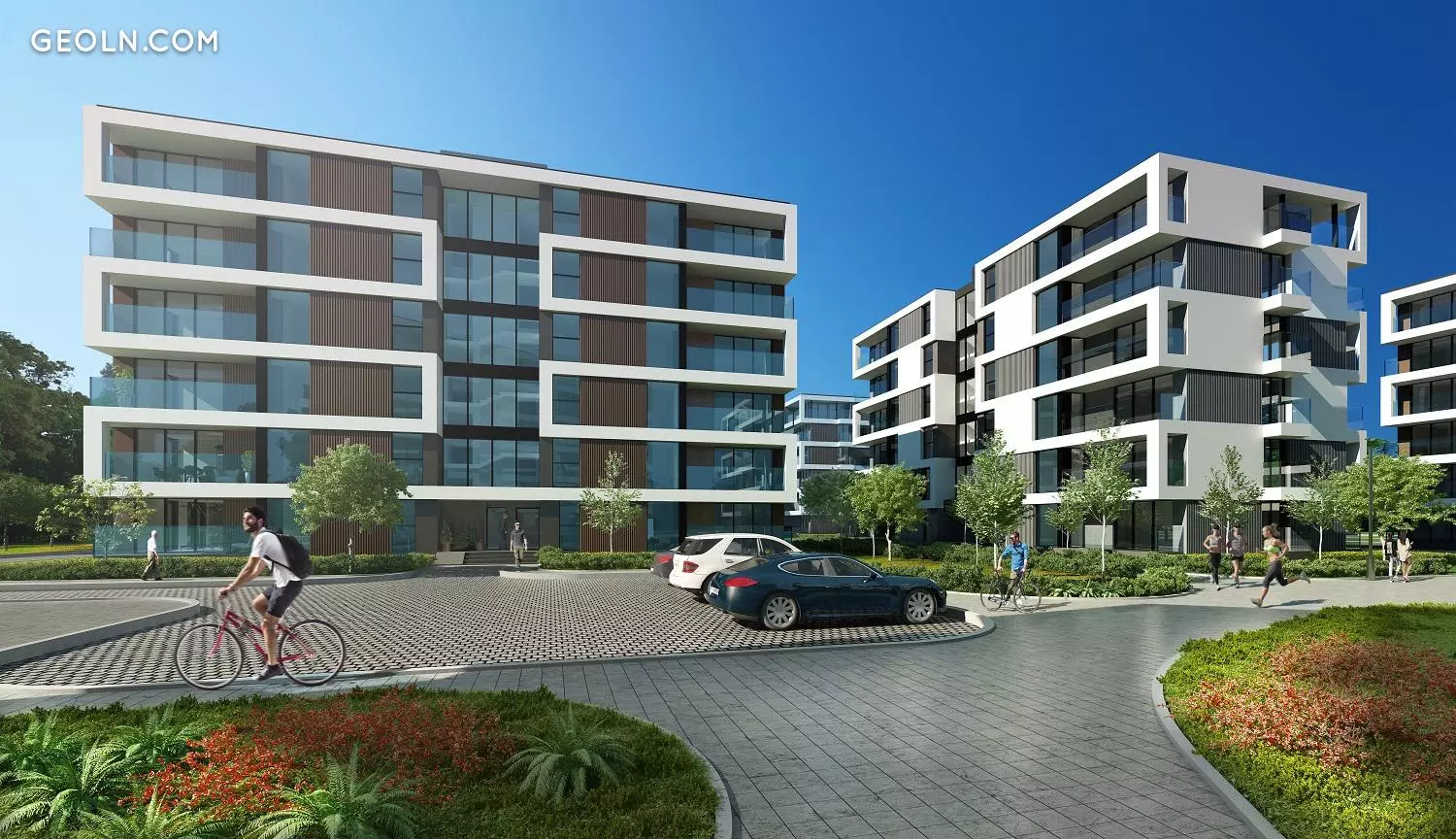 完善的内部基础设施-在大村庄液晶显示器的领土上,有游乐场,运动场,自行车道和自己的超市