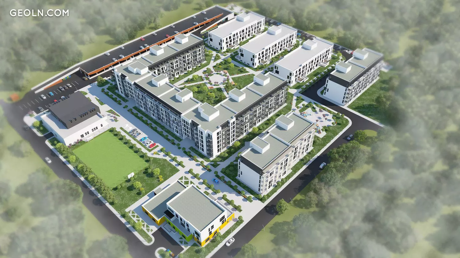 该项目在综合大楼的范围内提供了一个儿童休闲中心和一家超市;