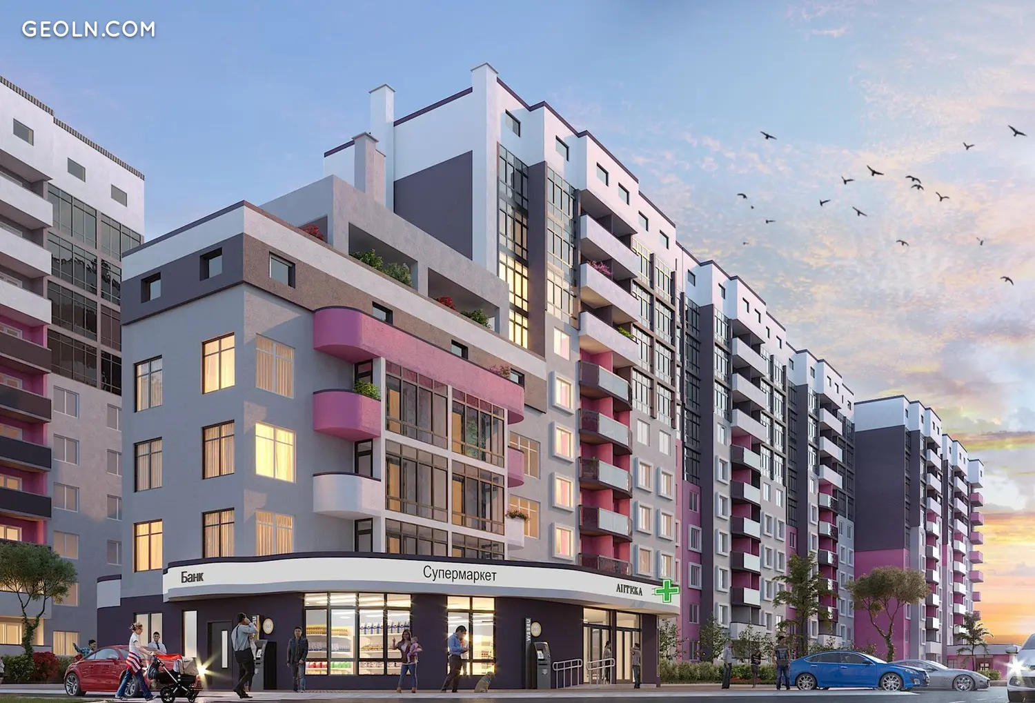 利沃夫 Trakt 住宅区的生态屋包括一居室和两居室公寓。玻璃凉廊、大厨房和客厅、功能设计的空间——公寓规划很好。外壳以粗糙的表面投入使用。