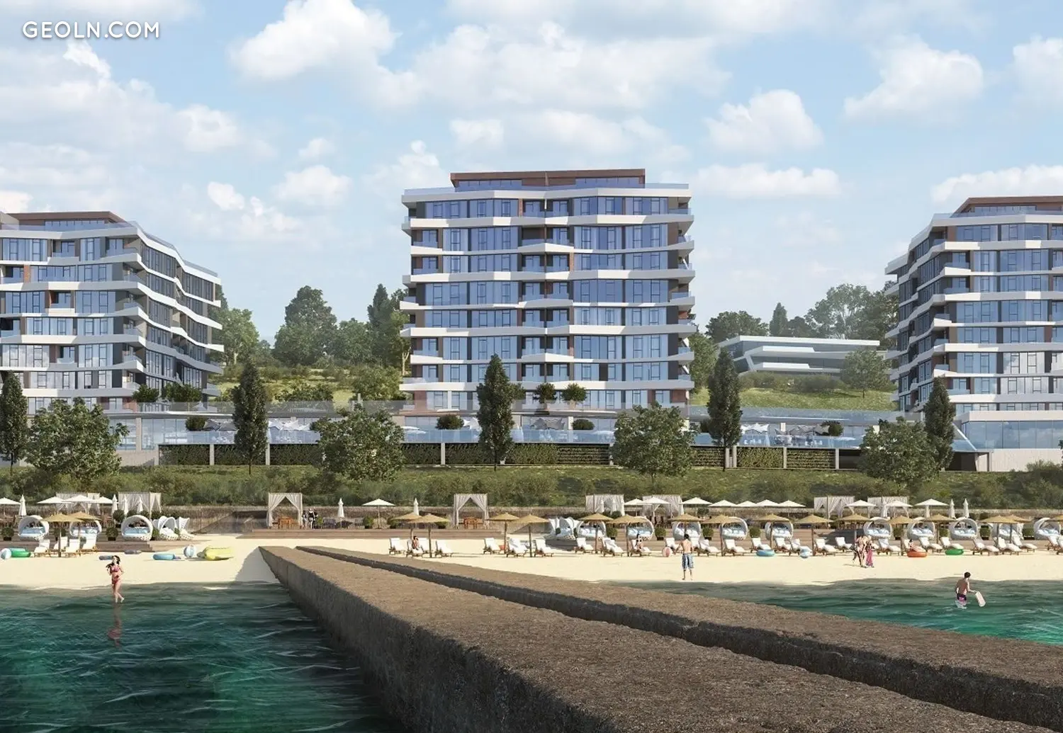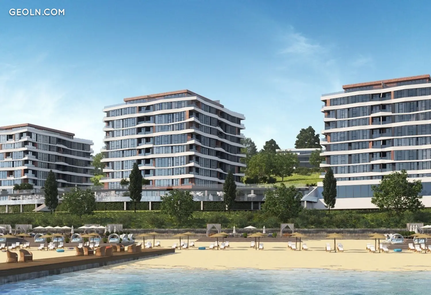 Costa fontana - 敖德萨度假区的住宅区,酒店和度假村之间。三栋内部相同的房屋,建筑风格相同,装饰如海浪。该综合体位于第一条线上,因此只有海滩离大海更近。 Costa fontana 拥有全高全景窗户和俯瞰大海的阳台,因此居民每天晚上都可以欣赏到令人惊叹的海上日落美景。