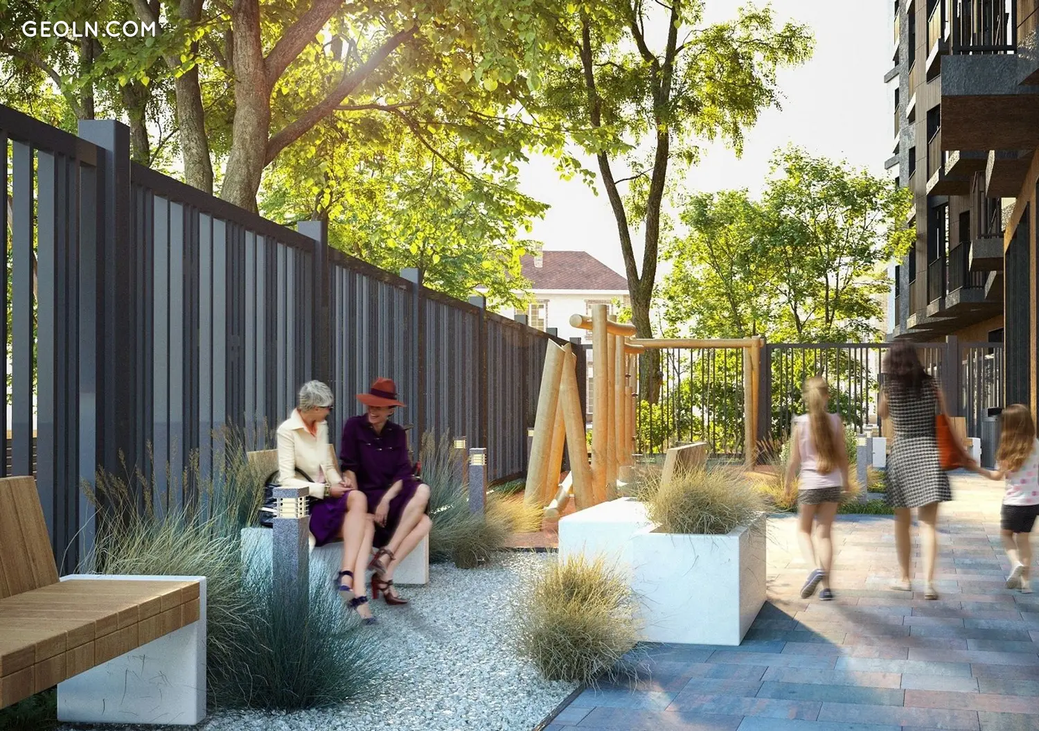 一楼有一个很大的商店空间,二楼有办公室。相邻的领土包括几个游乐场和绿地,没有汽车可供休闲娱乐。汽车方面,设计了一个可停放39辆车的带电梯的地下停车场,并在房子附近设计了一个客用停车场。