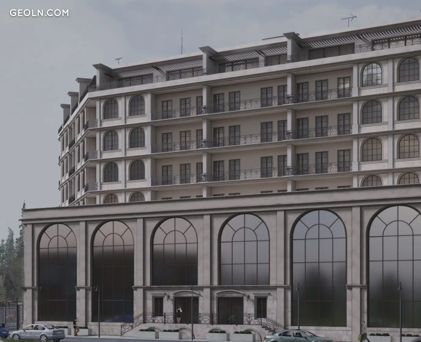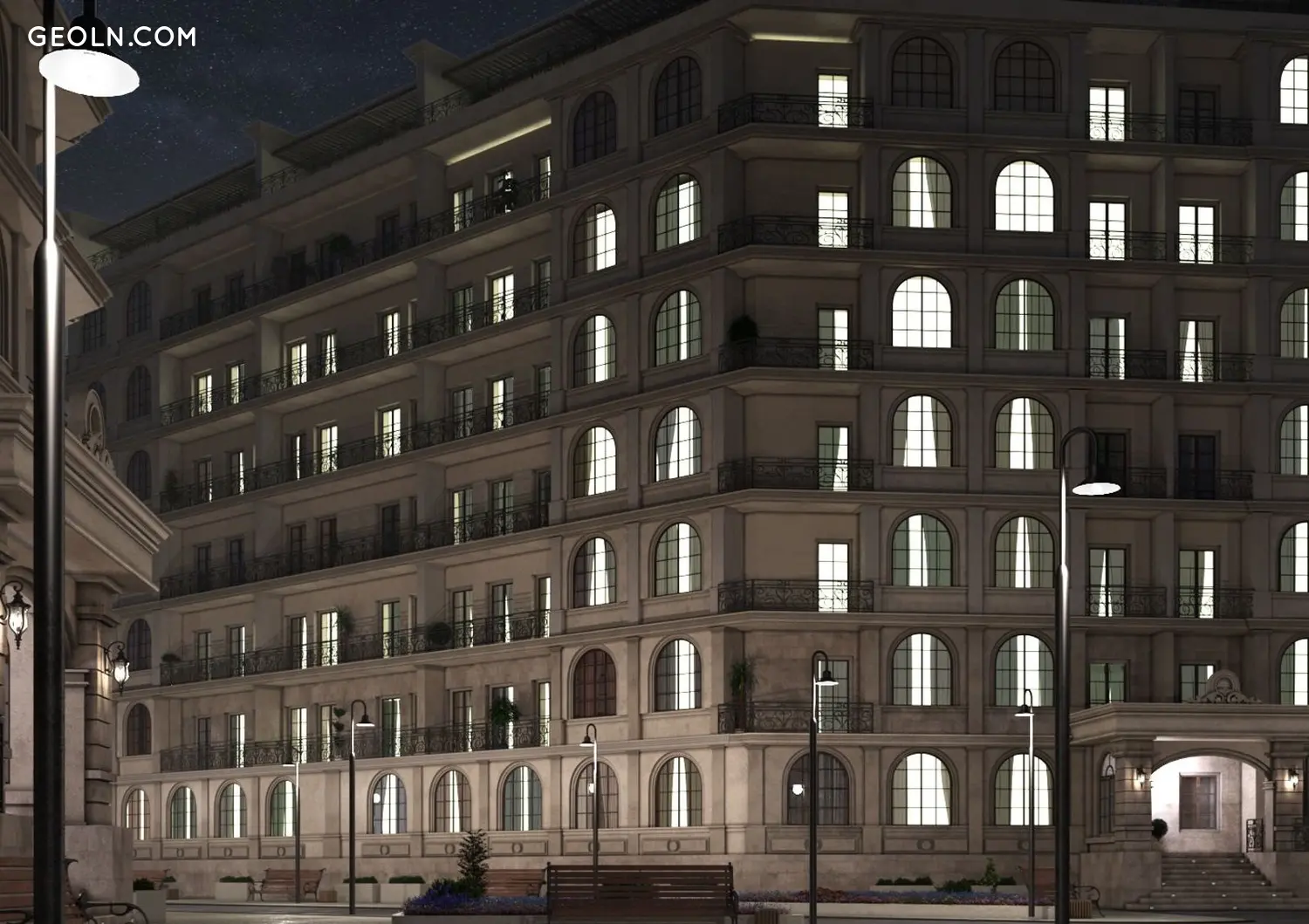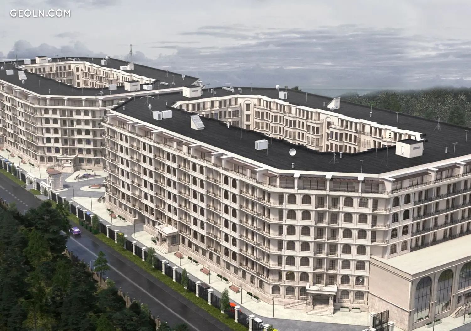 房屋的外墙将在阳台和露台上装饰有框架的拱形窗户、飞檐、线条、灰泥和薄锻铁条。尽管参考了古典主义,但综合体的窗户将是全景式的——这将有助于改善自然光进入房间和场所。