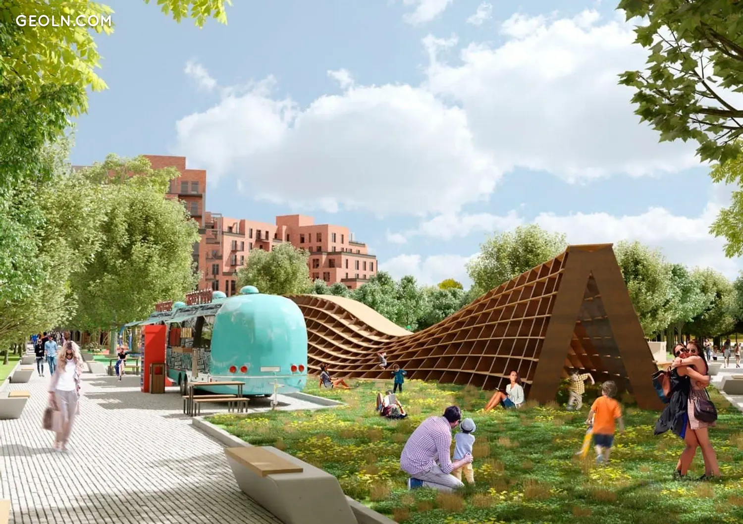 “文学空间”项目是一座8层高的建筑,由四部分组成,具有层叠和多层结构。该综合体的主要理念是创造一个舒适而周到的生活空间——有自己的 11,000 平方米的公园面积、带树屋的游乐场、与休息区、咖啡厅和运动区、完善邻里基础设施。由于“院子里没有车”的概念,在房子附近散步时会很平静和舒适。对于汽车,有一个带电梯的地下停车场,可容纳 60 辆车。