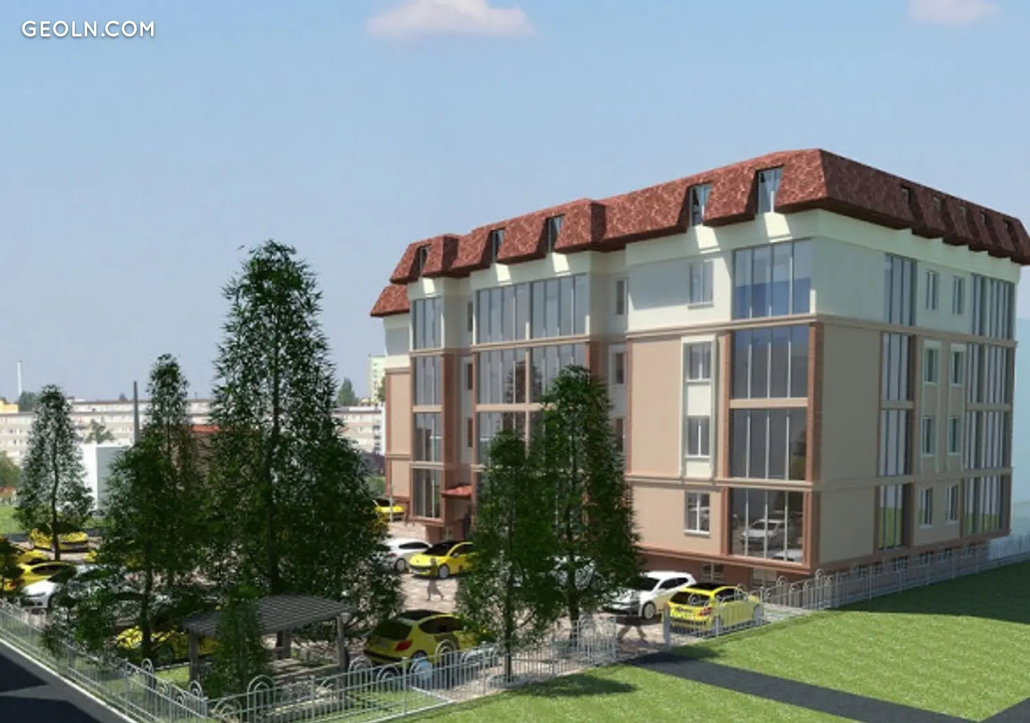在综合体的领土上有平台,上面覆盖着铺路板。还有供客人车辆使用的停车位。在新大楼的院子里有一个游乐场和一个放松的地方。种植树木、灌木、破碎的花坛。该综合体有围栏和看守,组织了视频监控。