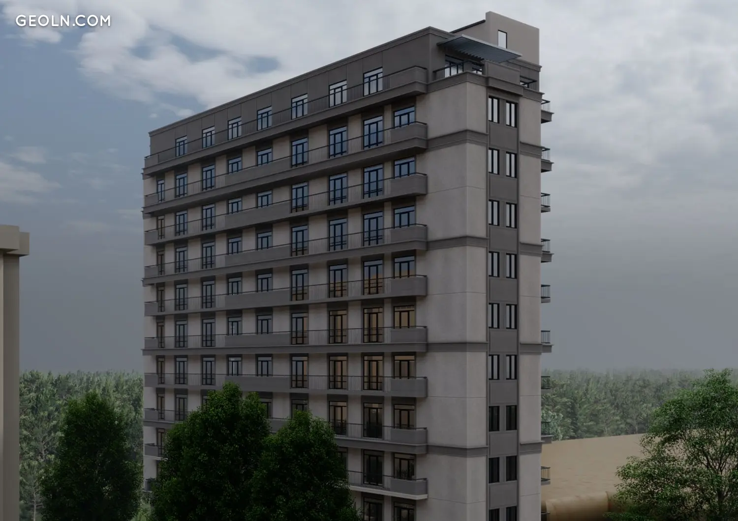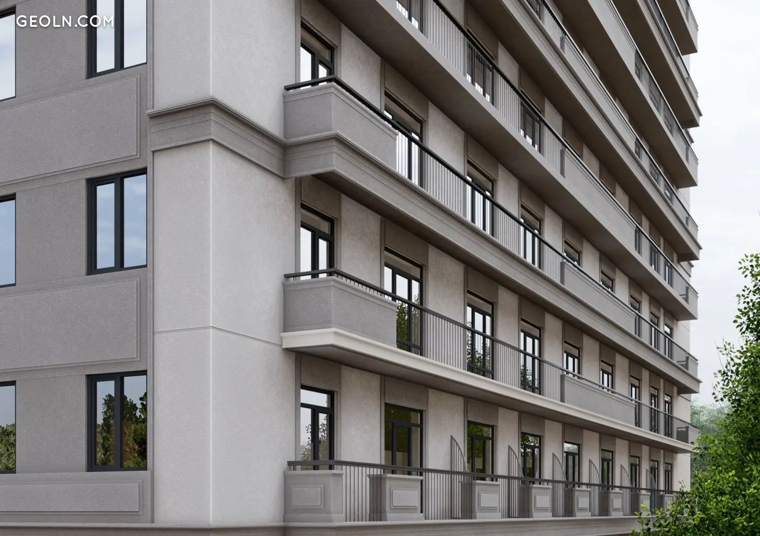 住宅区“奥林匹亚”的可识别性是由不寻常的建筑提供的——带玻璃围栏的三角形阳台、全景窗户、黑白装饰的对比。晚上,建筑物的墙壁将被照亮,使其看起来充满未来感。该综合体的另一个特点是从公寓到公园和大海的景色 - 越高,越美丽。